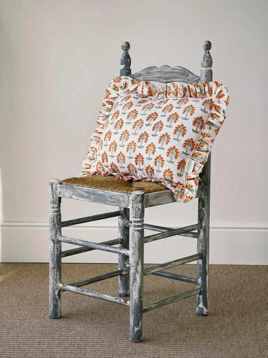 COJÍN VOLANTES BLOCK PRINT FLORAL NARANJA BLANCO