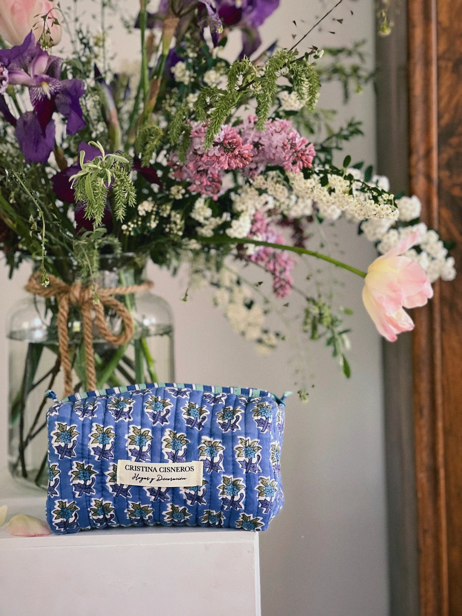 PURPLE FLORAL BLOCK PRINT TOILETRY BAG