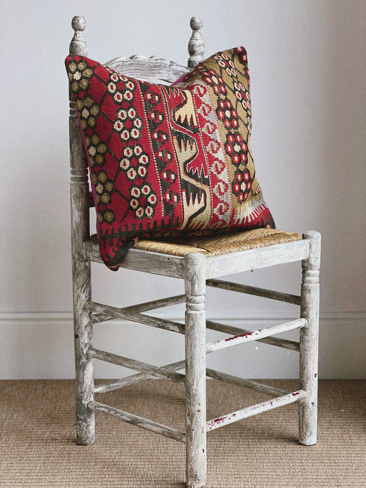 CORAL BRONZE FLORAL BLOCK PRINT RUFFLE CUSHION