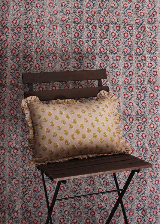 Sold outBLOCK PRINT FLORAL RUFFLE CUSHION