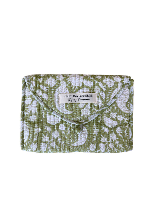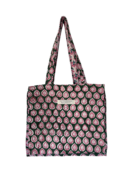 Sold outSMALL BLOCK PRINT FLORAL GREEN BAG