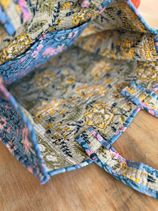 Sold outBLUE FLORAL BLOCK PRINT BAG