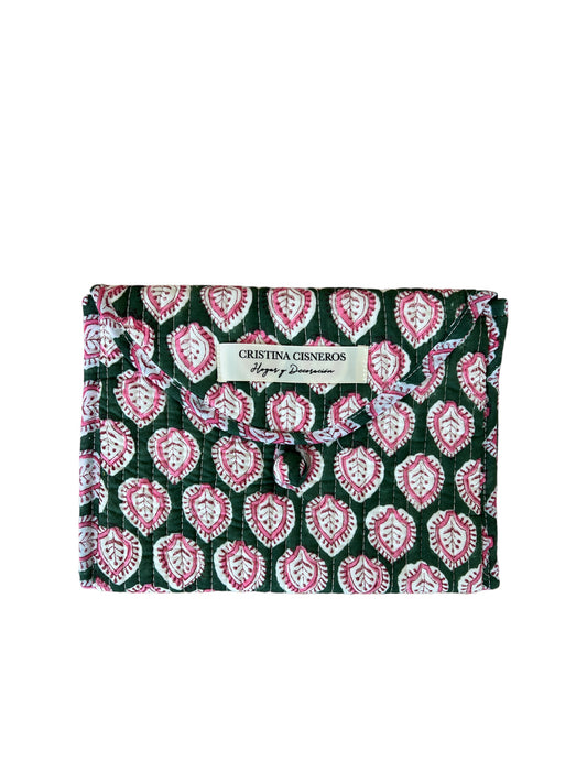 PINK FLORAL BLOCK PRINT TOILETRY BAG