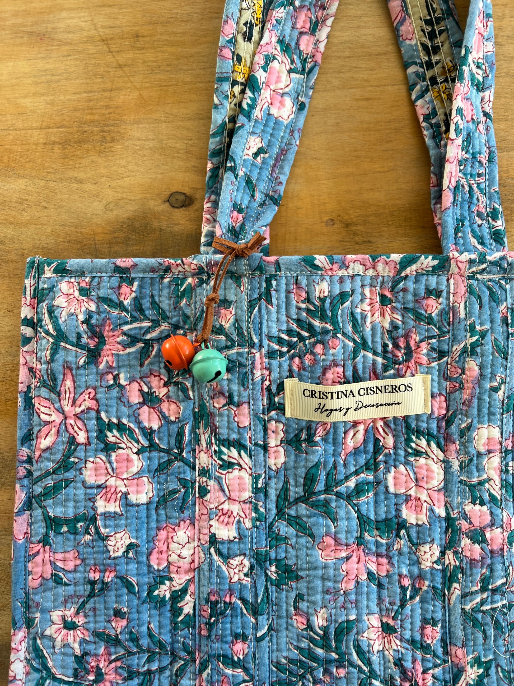 Block Print padded bags, perfect for carrying everything you need for traveling, going to any sporting activity, for the beach, for your knitting projects, for school, or simply as a regular bag.
