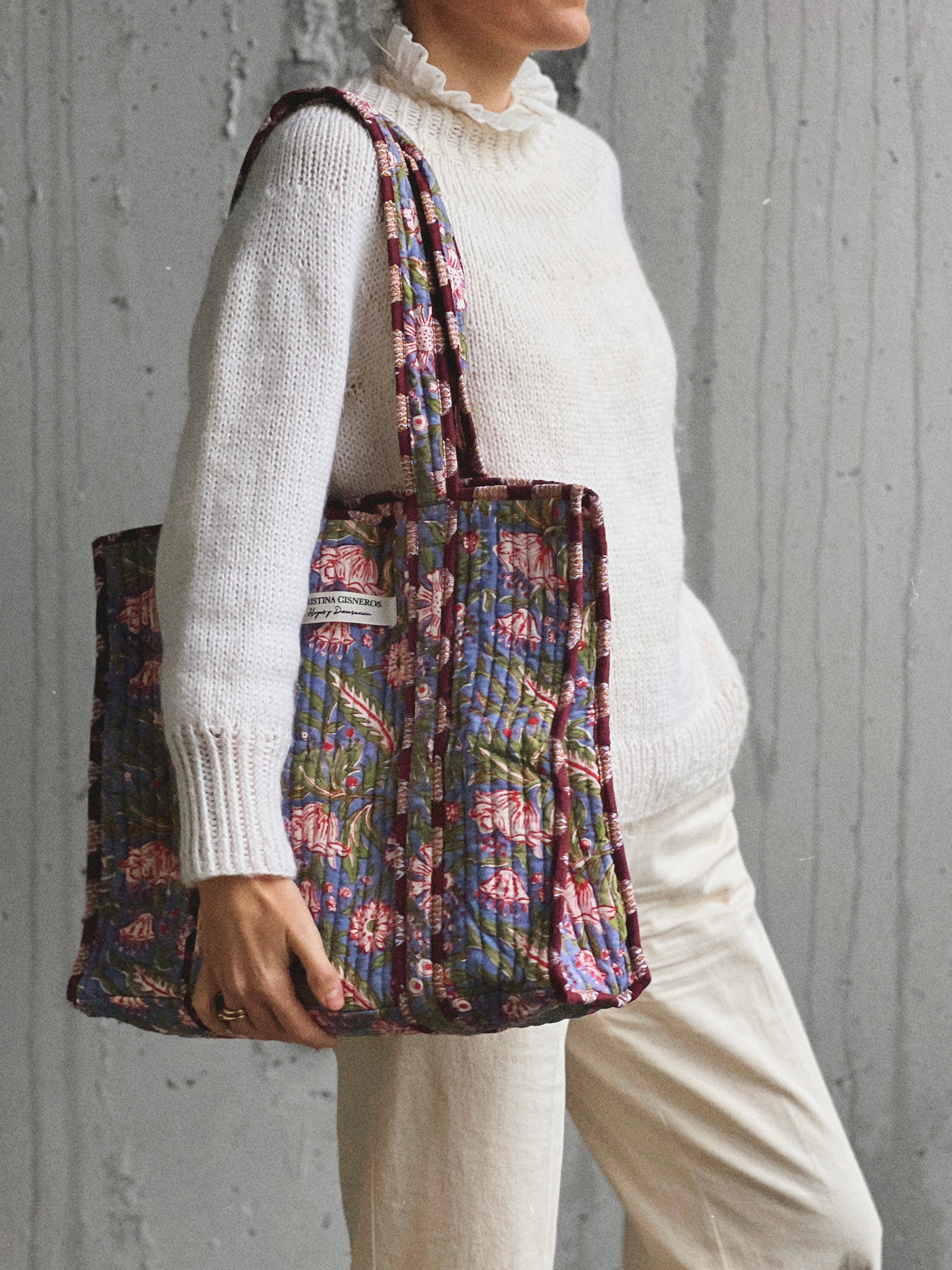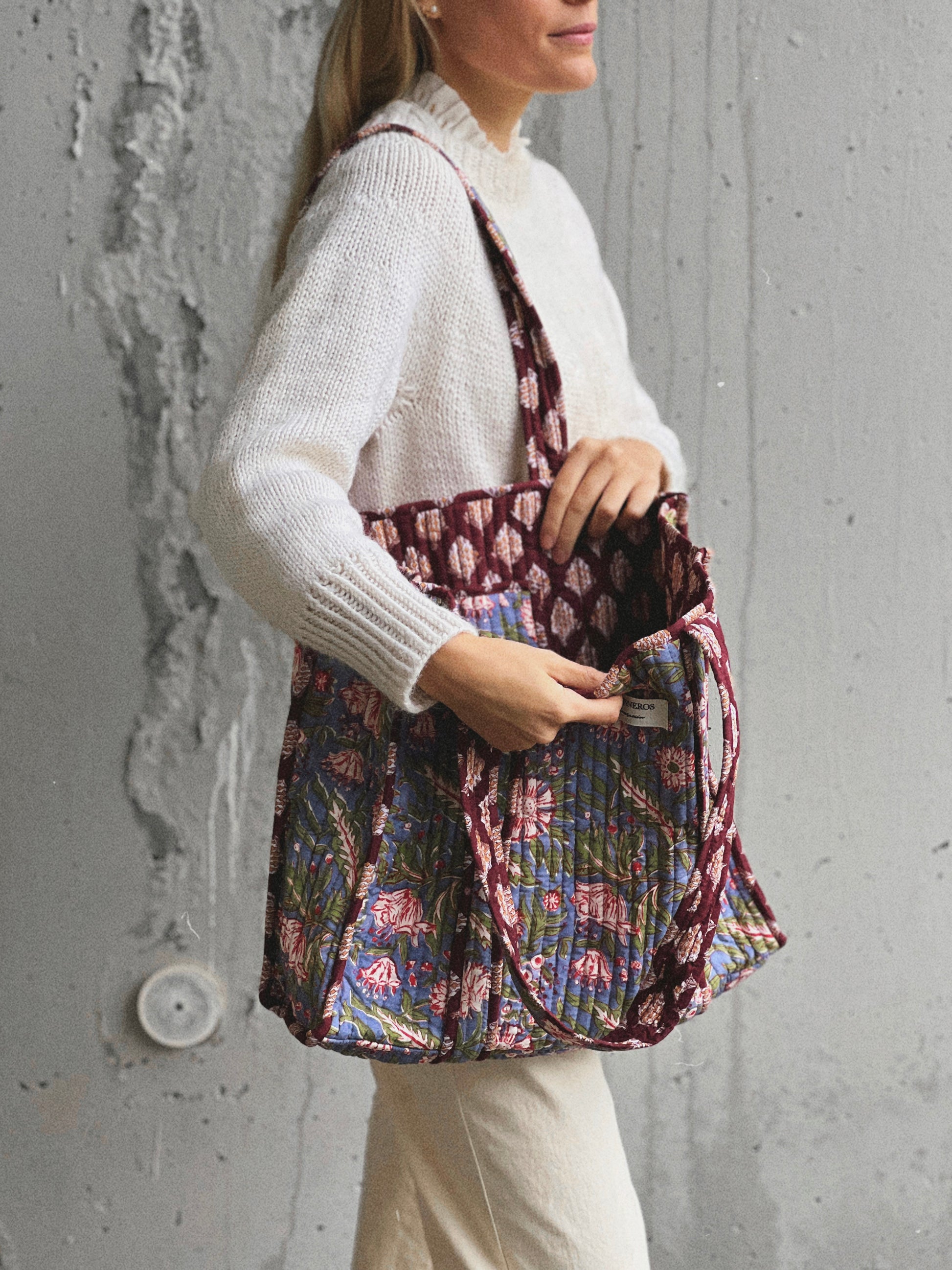 Block Print quilted bags, perfect for carrying everything you need for traveling, going to any sporting activity, for the beach, for your knitting projects, for school, or simply as a regular bag.