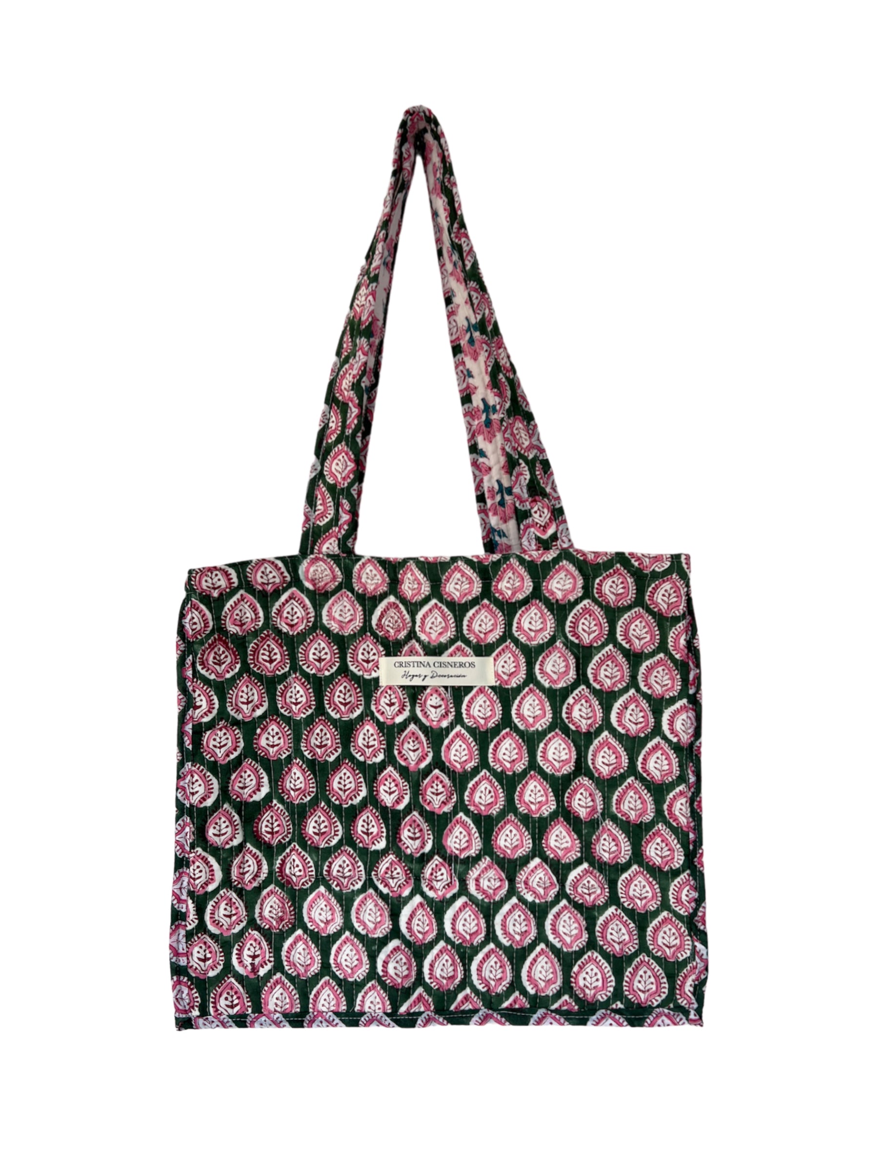 GREEN FLORAL BLOCK PRINT BAG