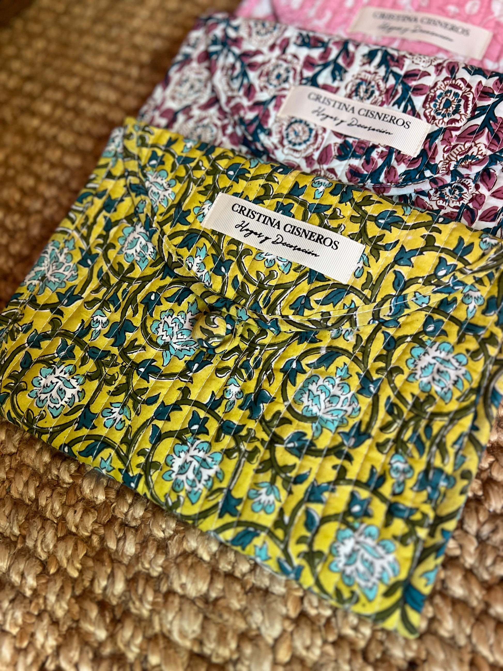 Block Print Padded Bag, ideal for transporting small objects and having everything at hand and well organized. As a toiletry bag, for knitting needles, or even as a handbag for a special occasion. Matching inner lining.