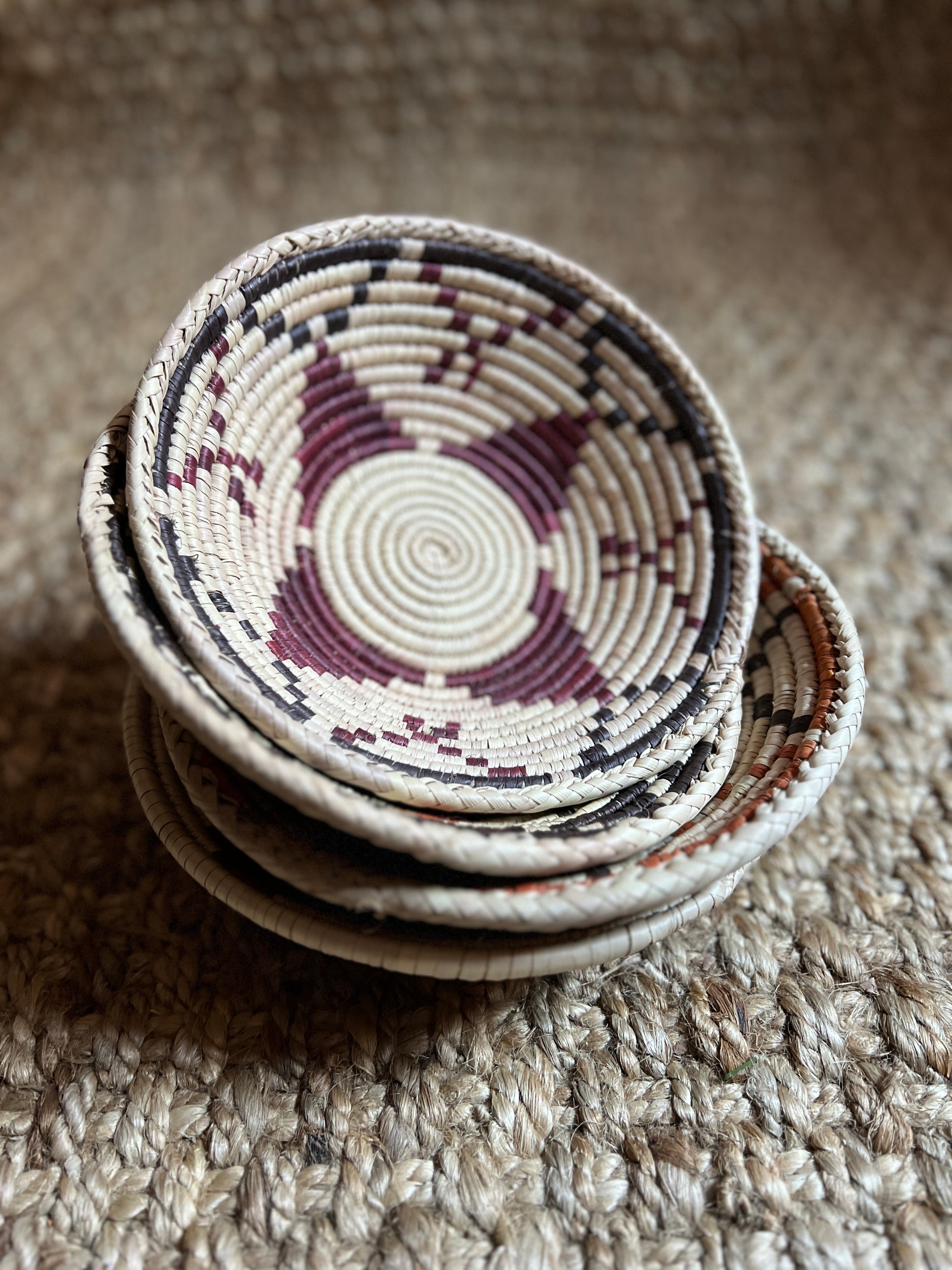 Plate, fruit bowl, bowl, bread basket, made of vegetable fiber, handmade with different designs and colors. Ideal as a wall decoration or as a fruit bowl, bread basket, baskets, empty pockets, etc.