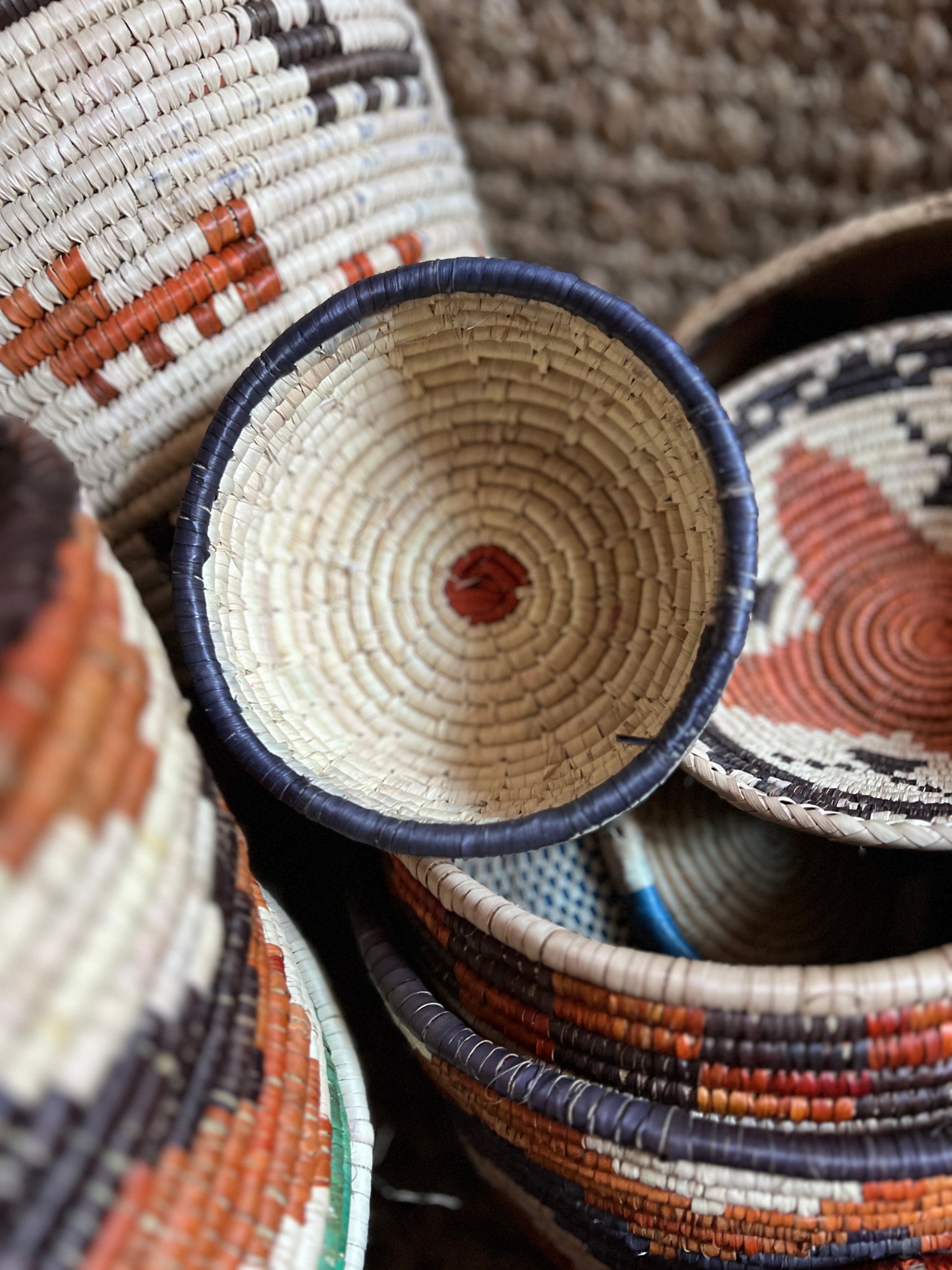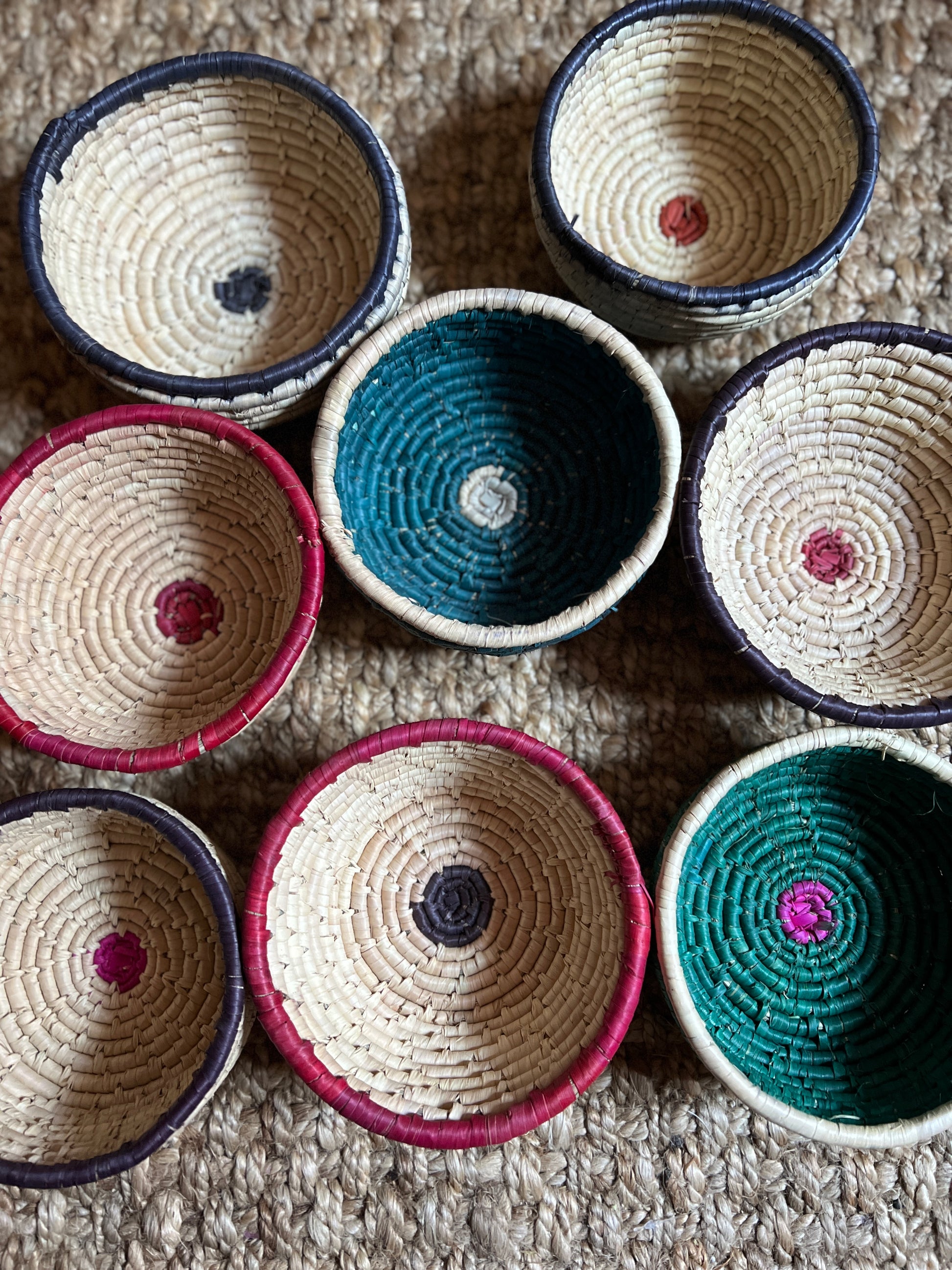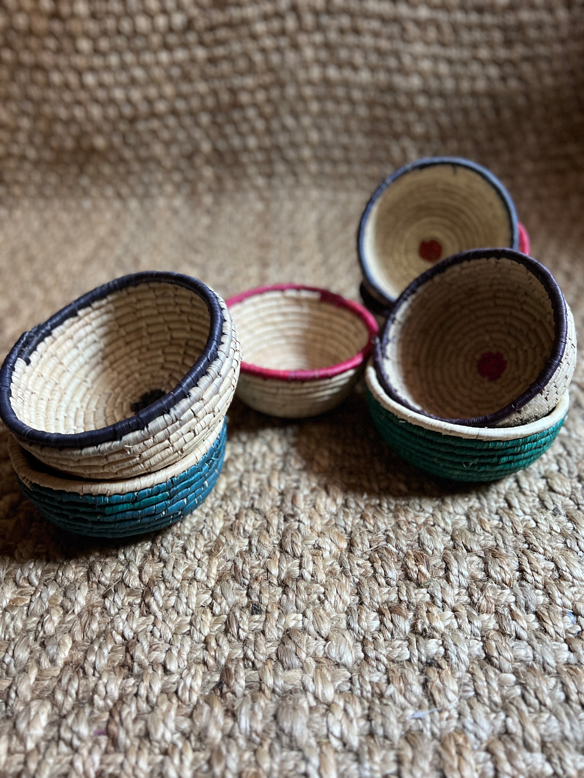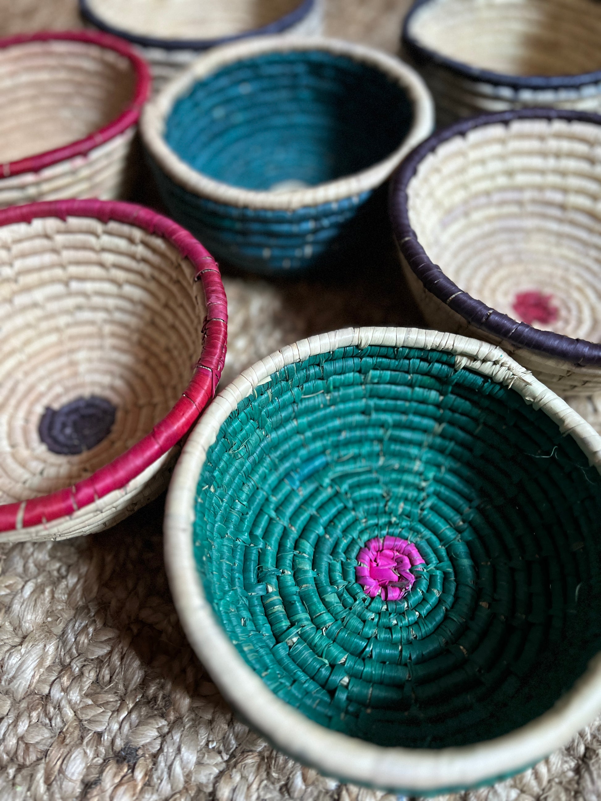 Basket, fruit bowl, bowl, bread basket, made of vegetable fiber, handmade with different designs and colors. Ideal as a wall decoration or as a fruit bowl, bread basket, baskets, empty pockets, etc.
