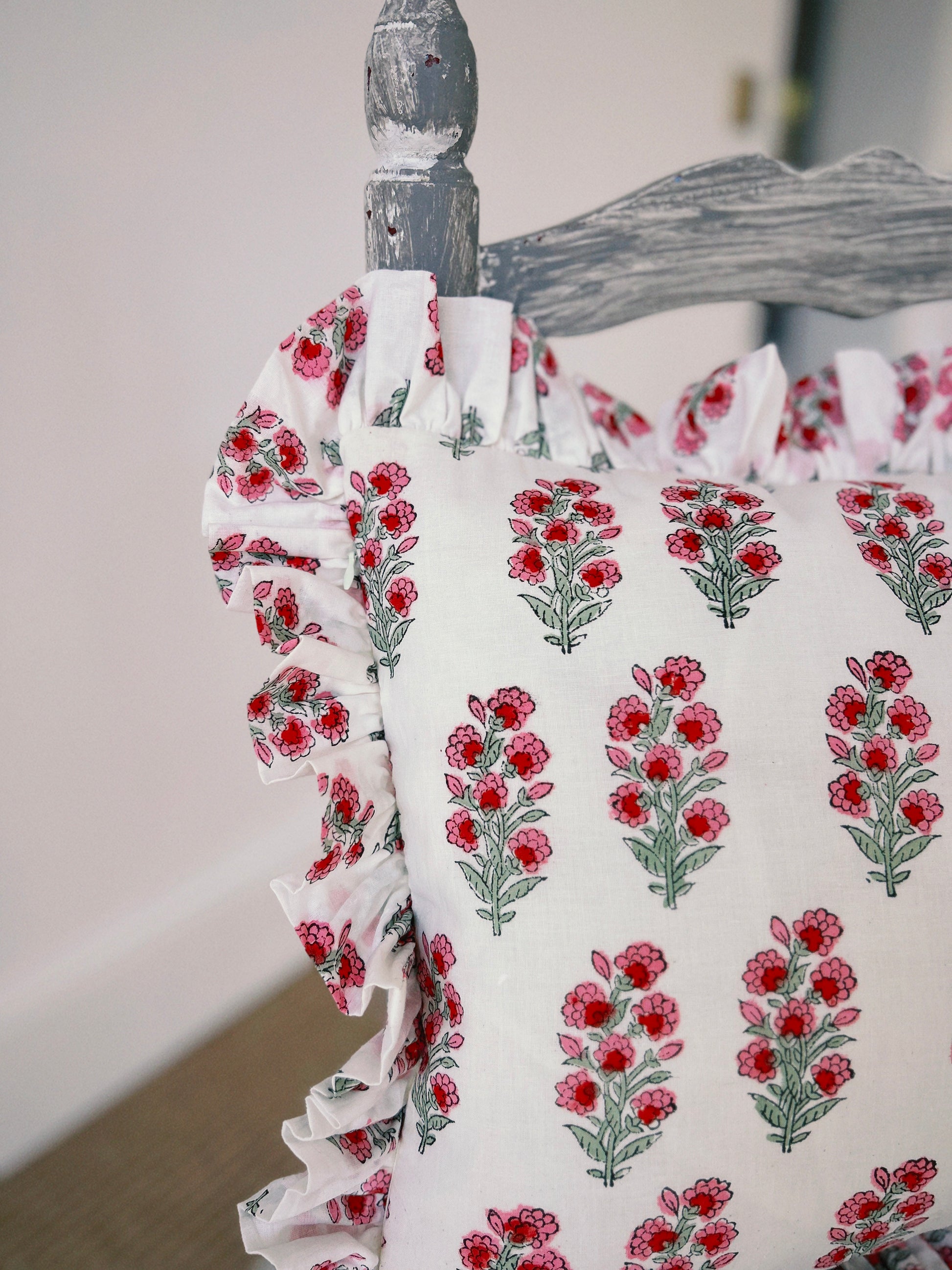 BLOCK PRINT FLORAL Ruffle Cushion XXX