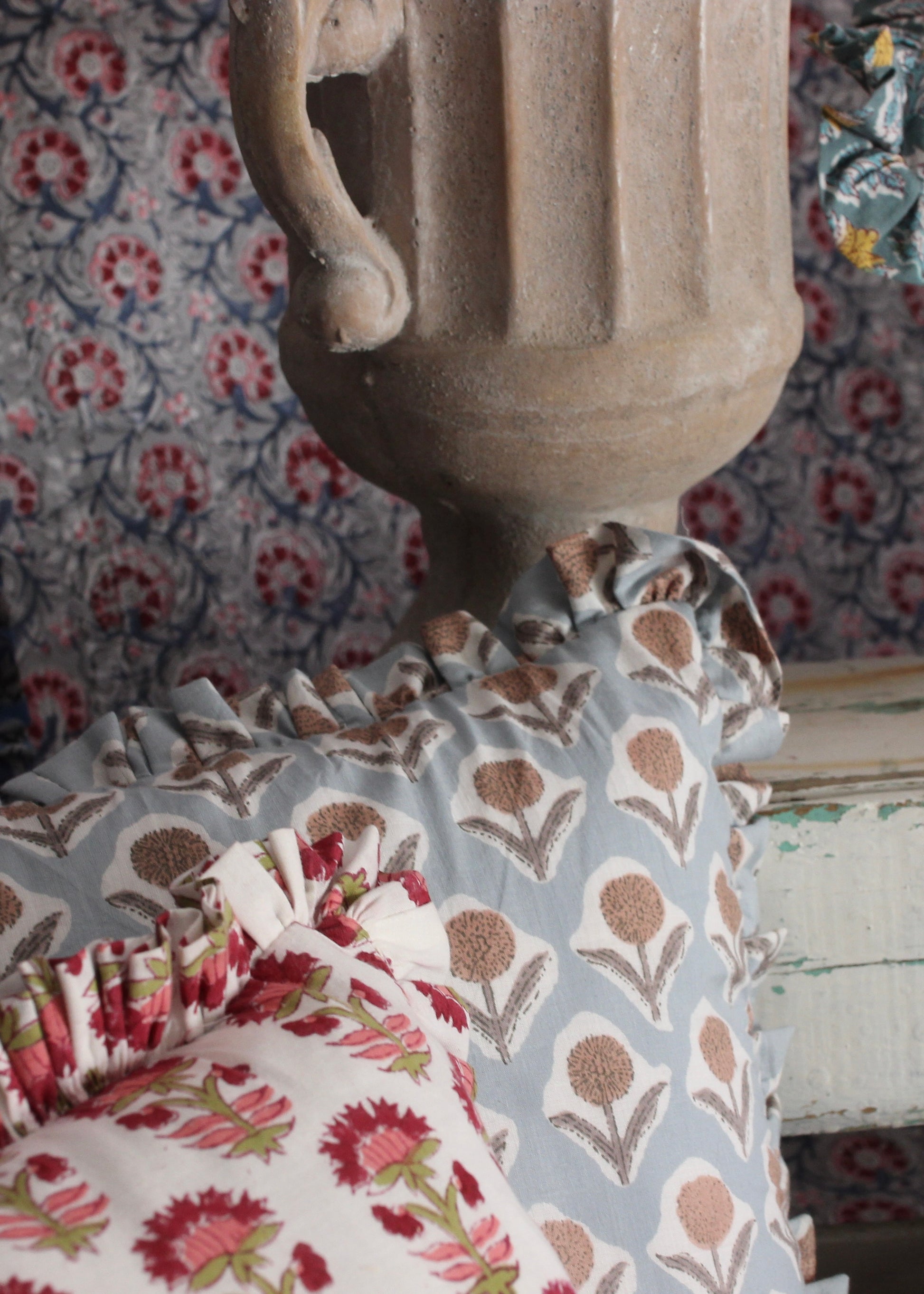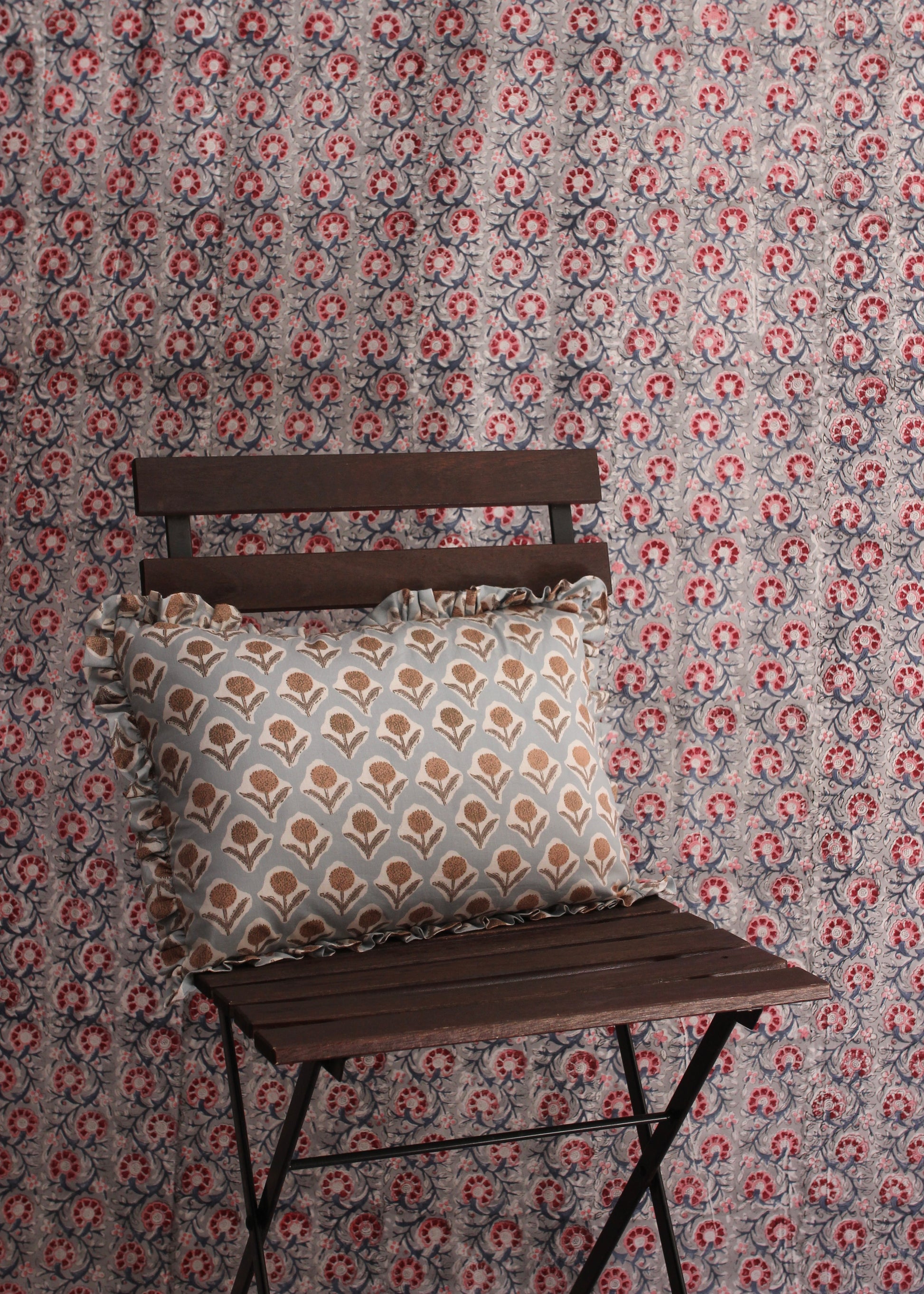 BLOCK PRINT FLORAL RUFFLE CUSHION
