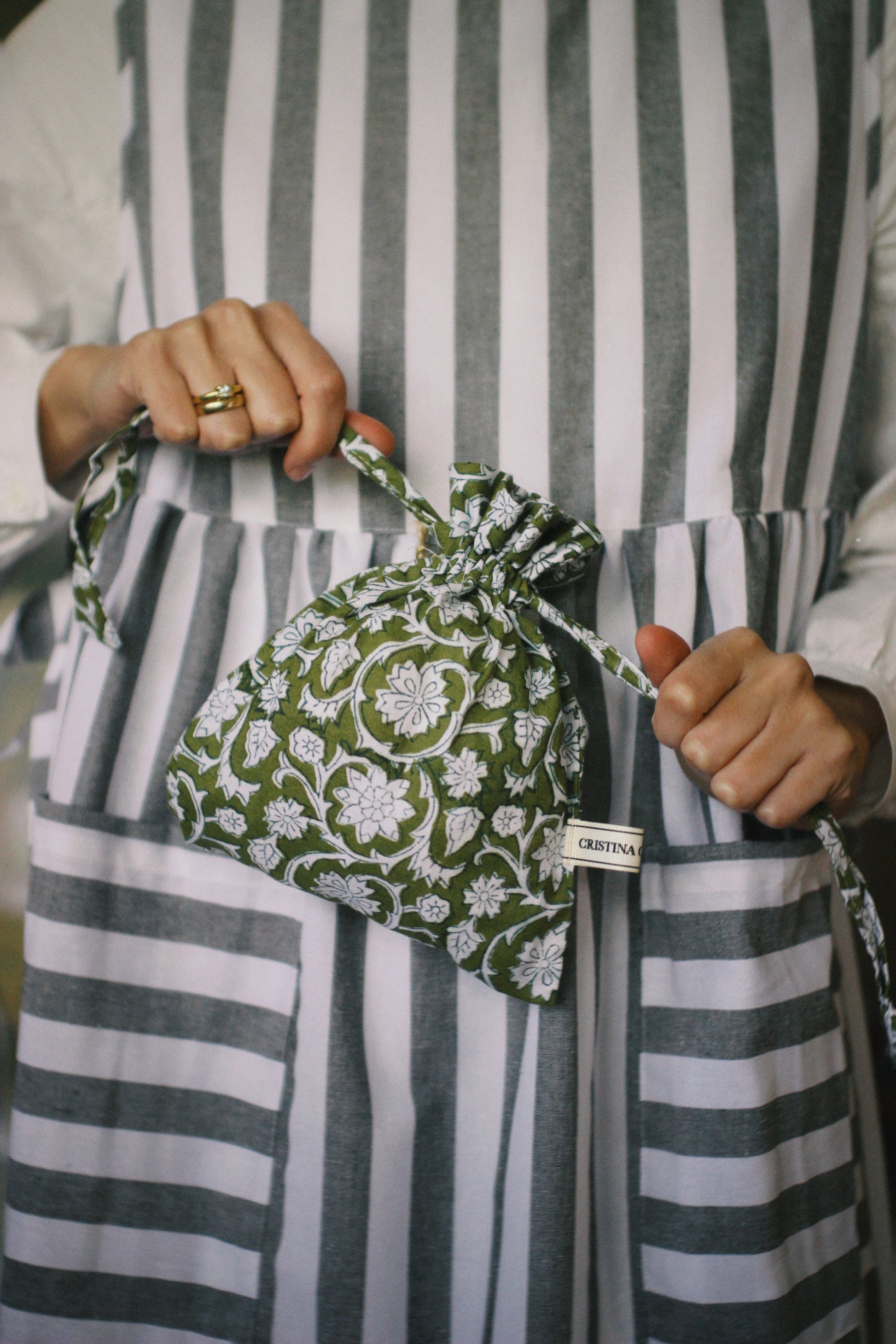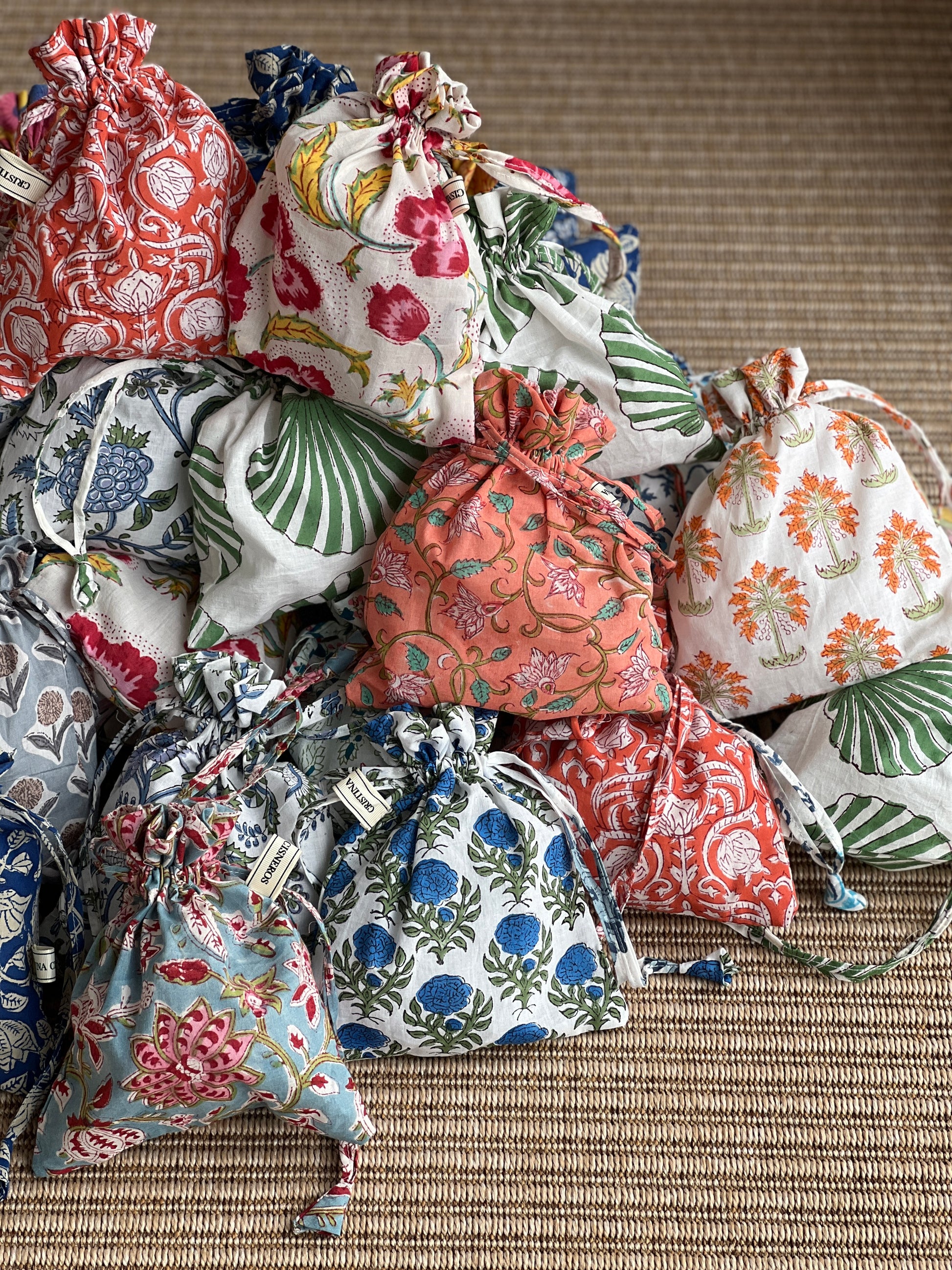 Small Block Print bag, pouch, or pouch , ideal for carrying small items and keeping everything handy and organized. Use it as a toiletry bag, underwear bag, purse organizer , travel bag, or even as a handbag for a special occasion. Drawstring closure.