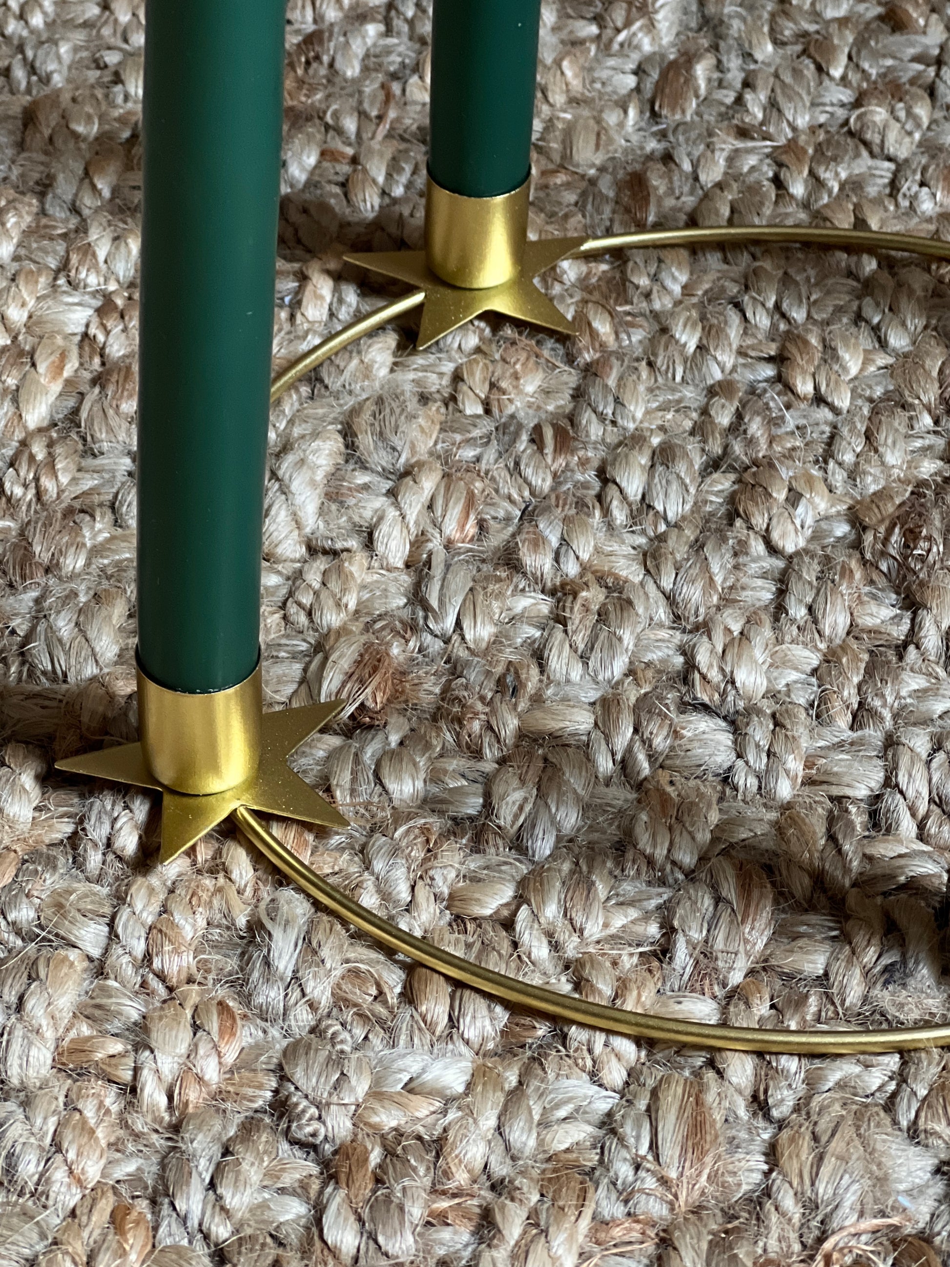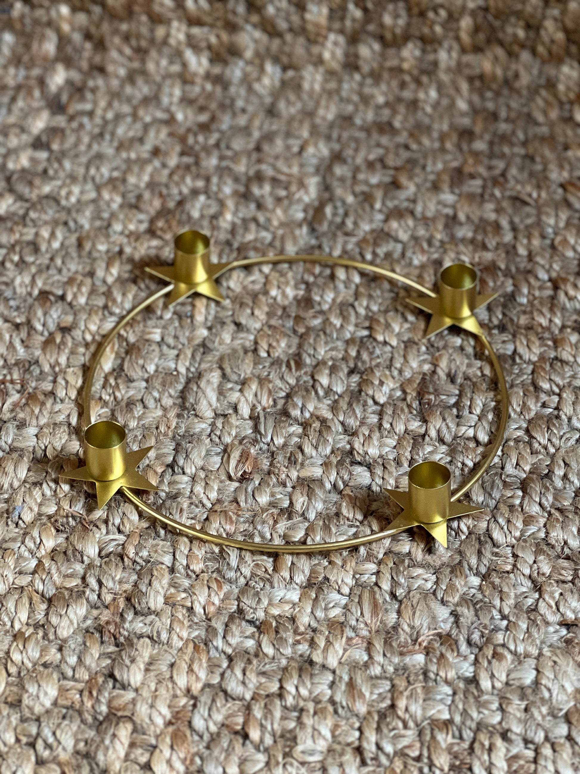 Advent candle holder wreath in gold metal for 4 candles . Perfect for decorating natural plant wreaths or as a support for them.