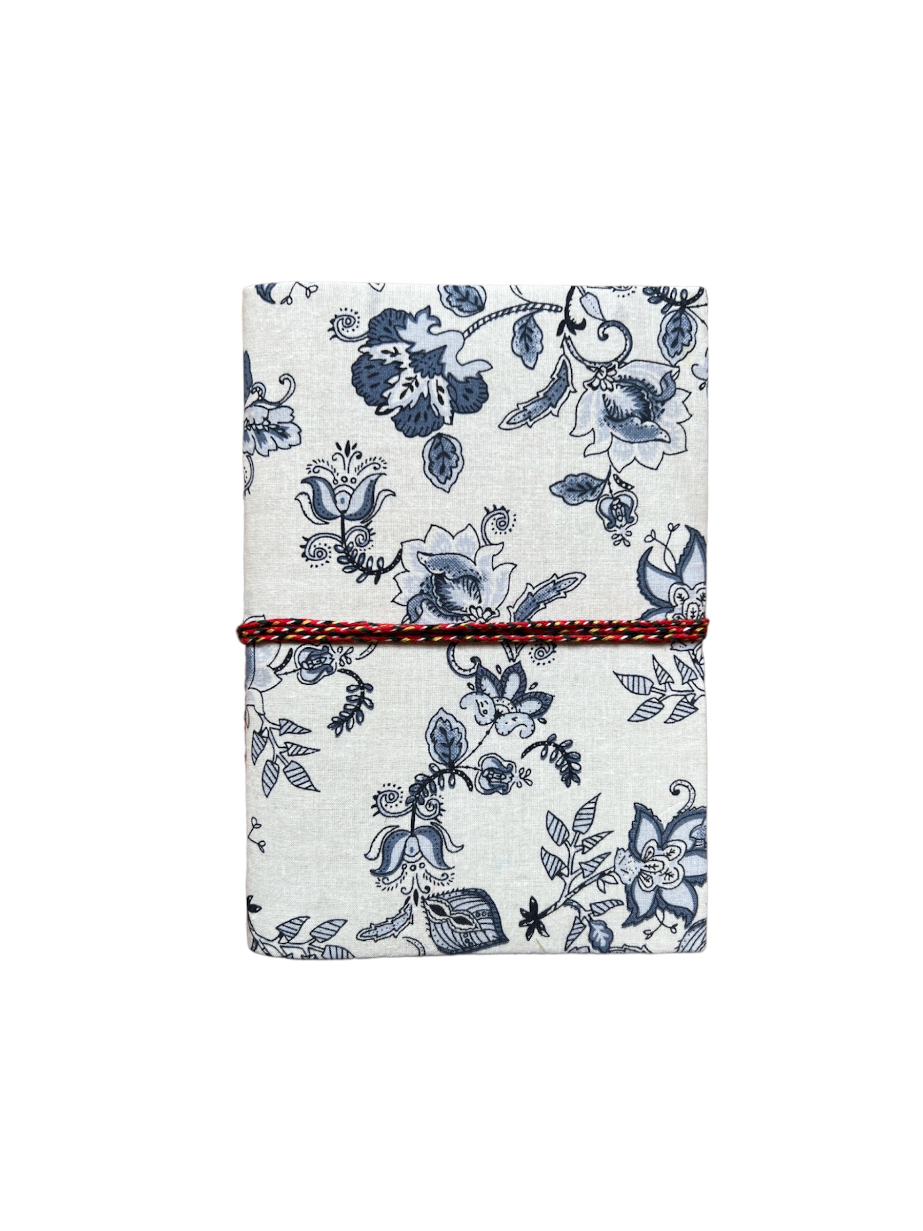 A5 or A6 notebook lined with Block Print fabric and with drawstring closure. It can be used as a travel notebook, personal organization book, for college, drawing notebook, bullet journal and endless other uses.
