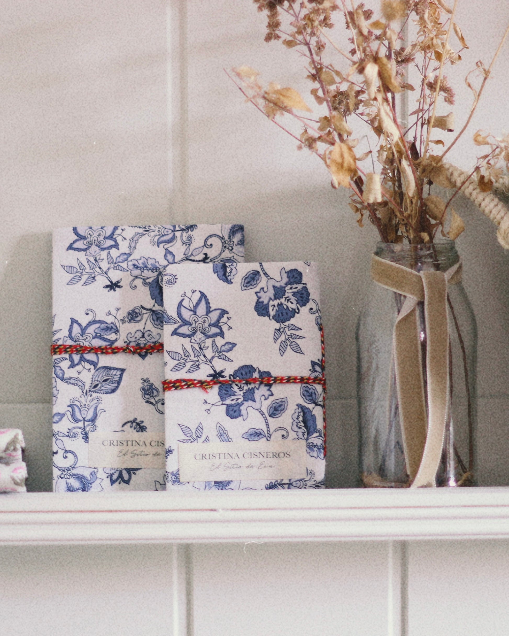Made of heavyweight paper for writing and drawing without transfer problems, lined with 100% cotton by hand with hand-dyed fabrics and closure with a two-way cord.