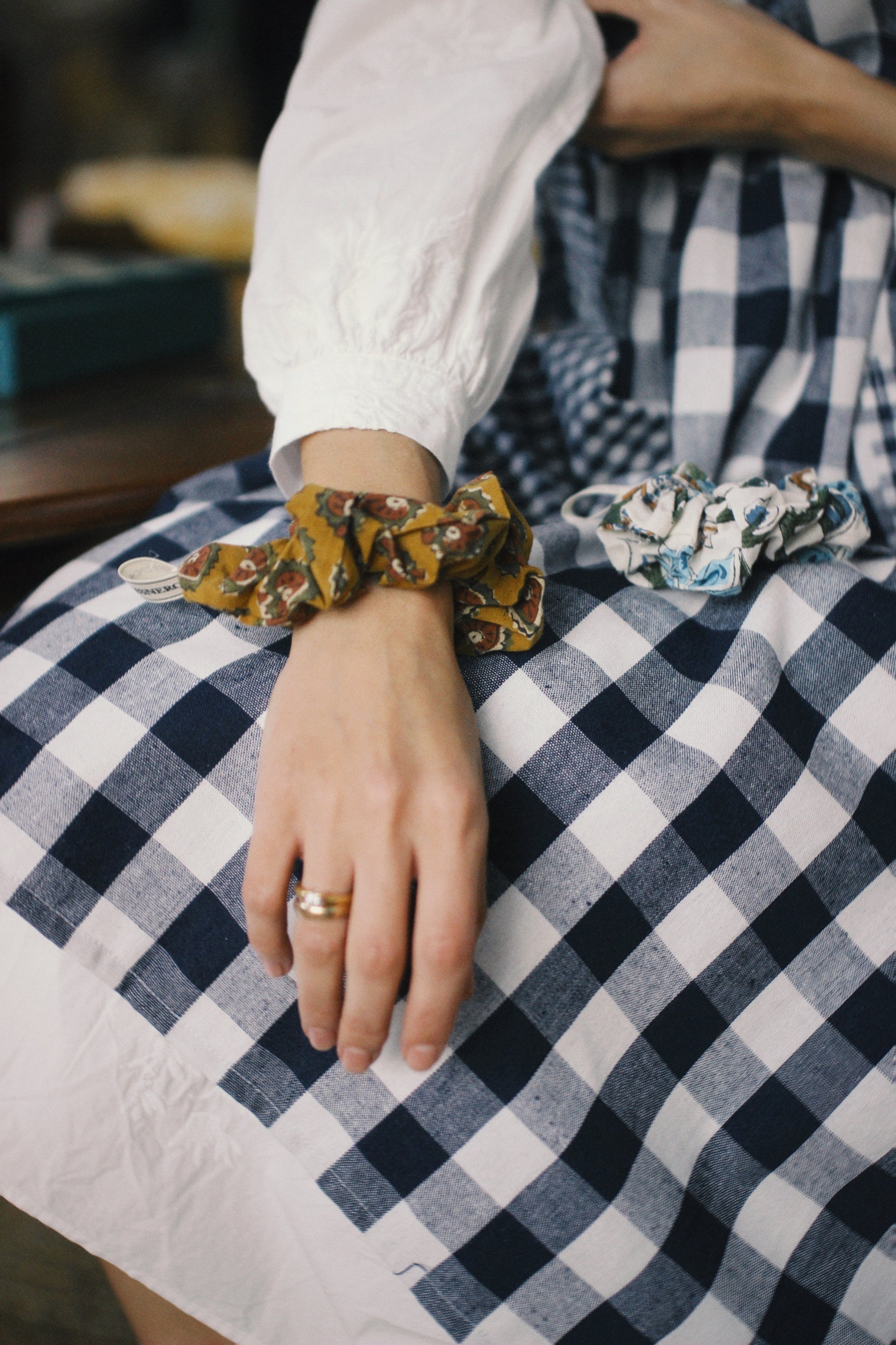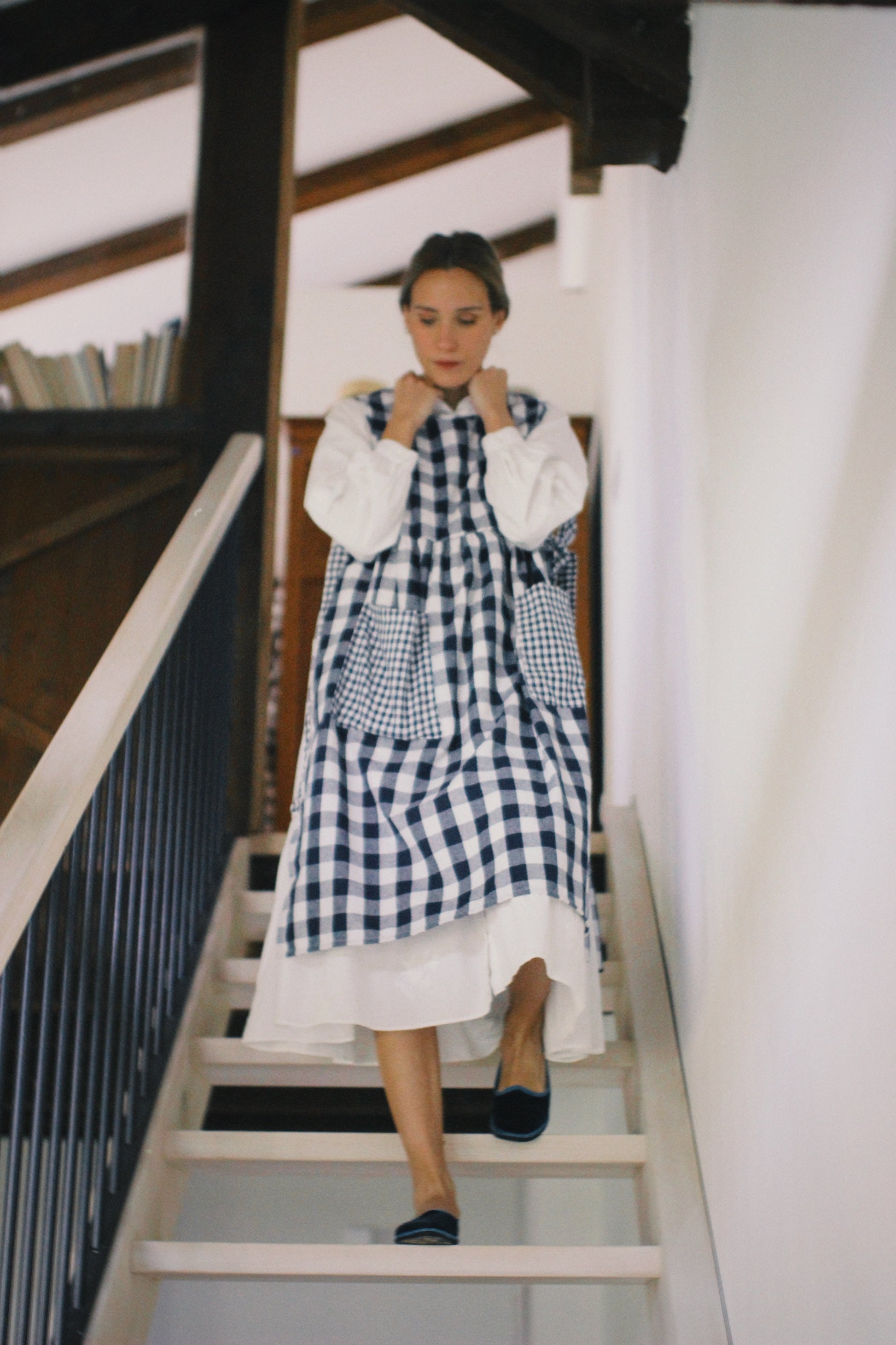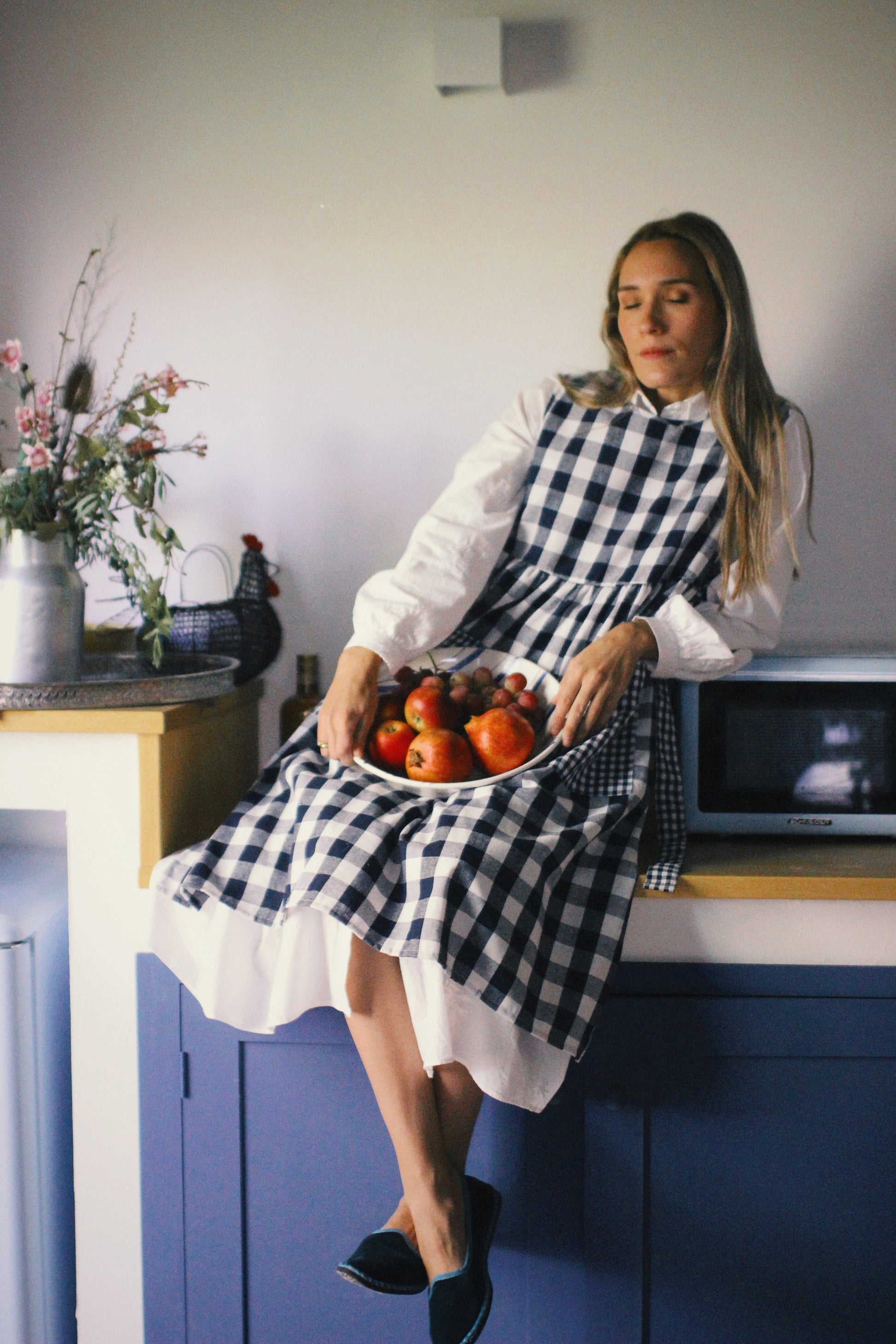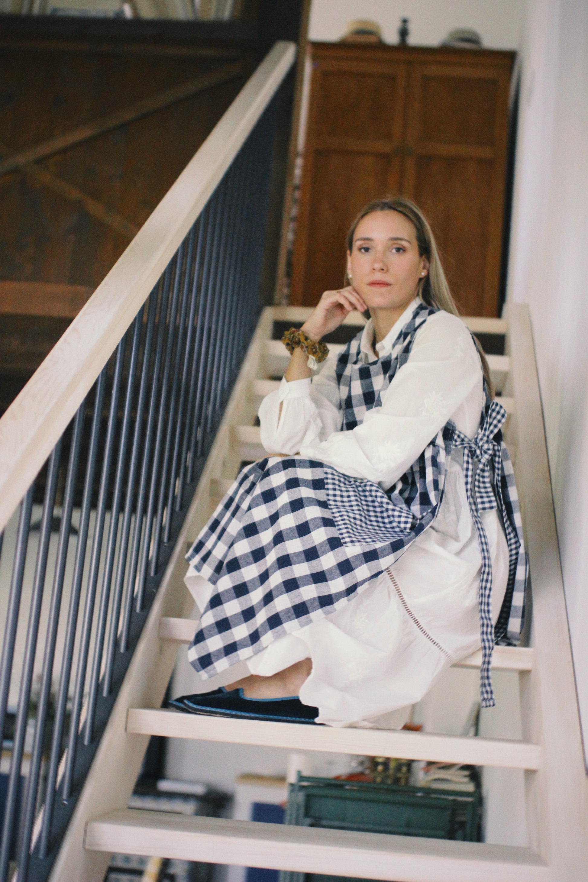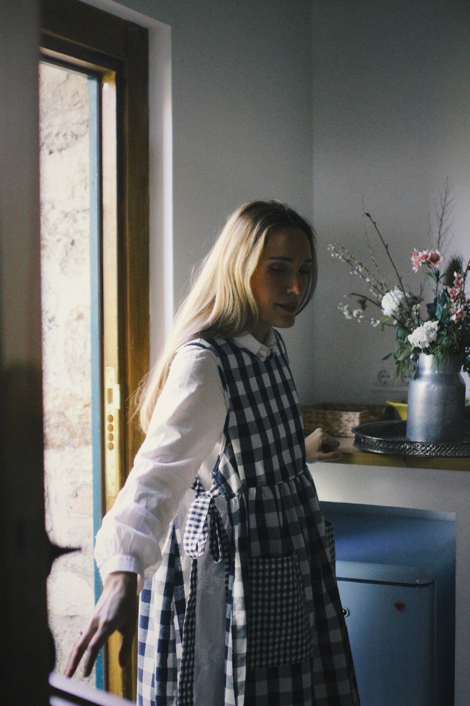 BLUE VICHY LINEN APRON WITH BOW