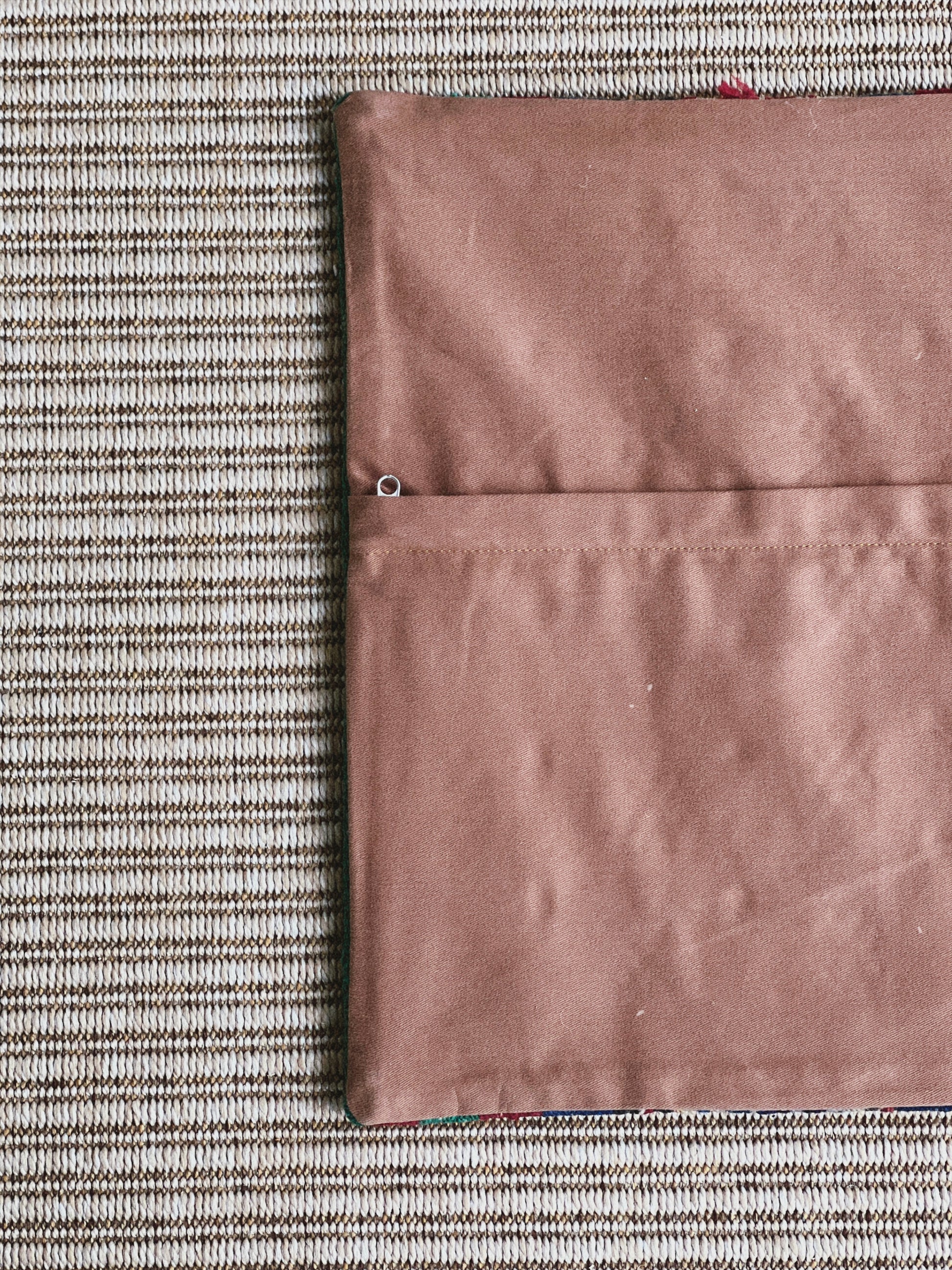 CORAL BRONZE FLORAL BLOCK PRINT RUFFLE CUSHION