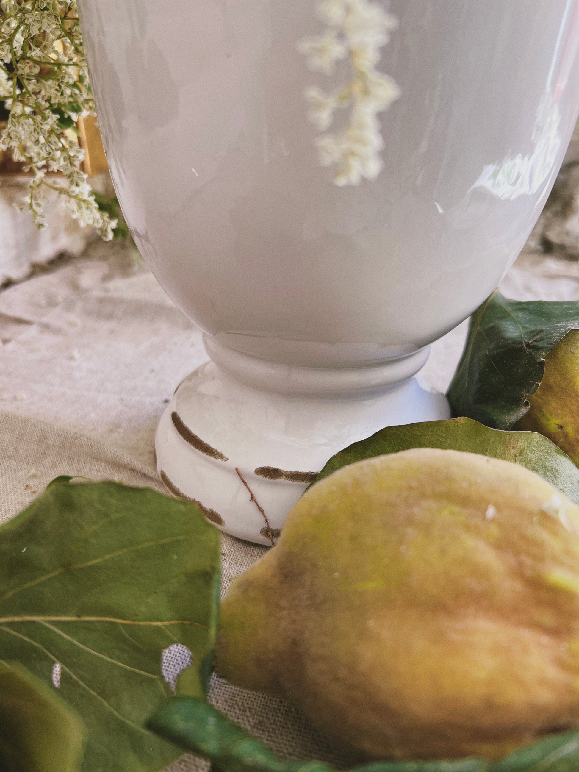 Large white ceramic flower center vase , very resistant with weight to hold the arrangement well.