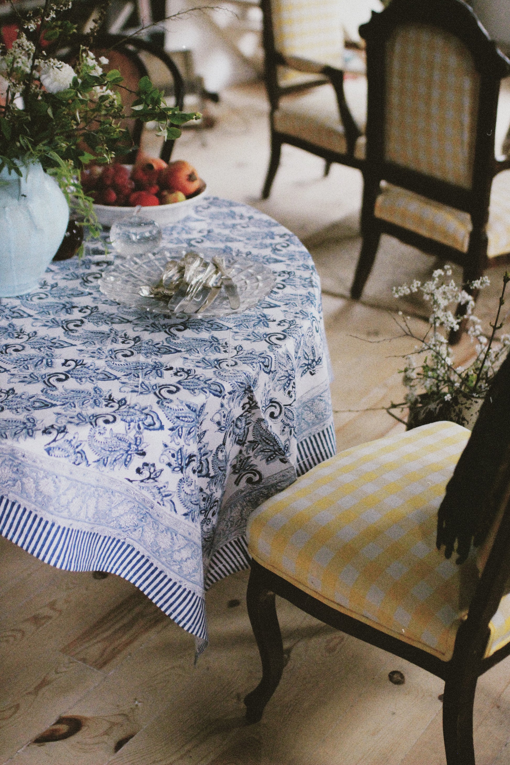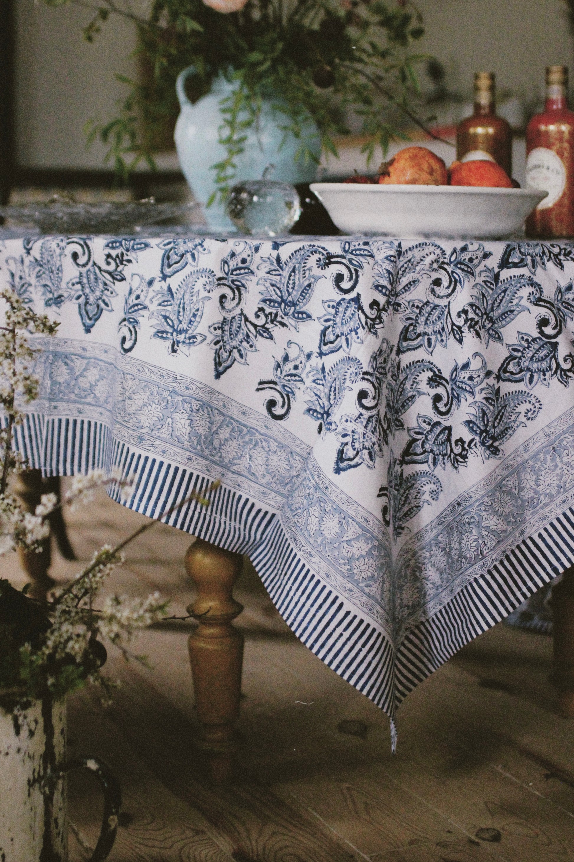 BLUE FLORAL BLOCK PRINT TABLECLOTH