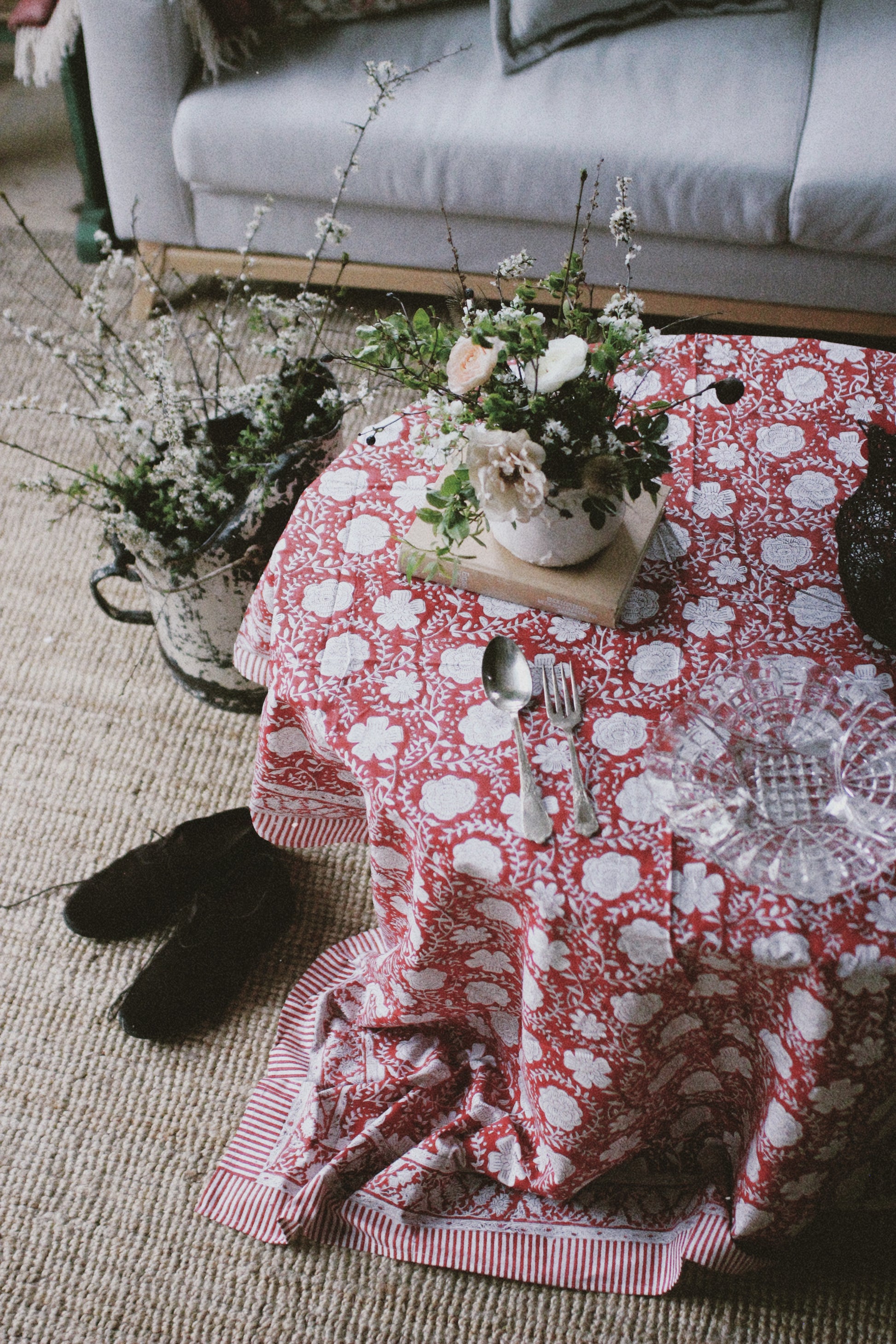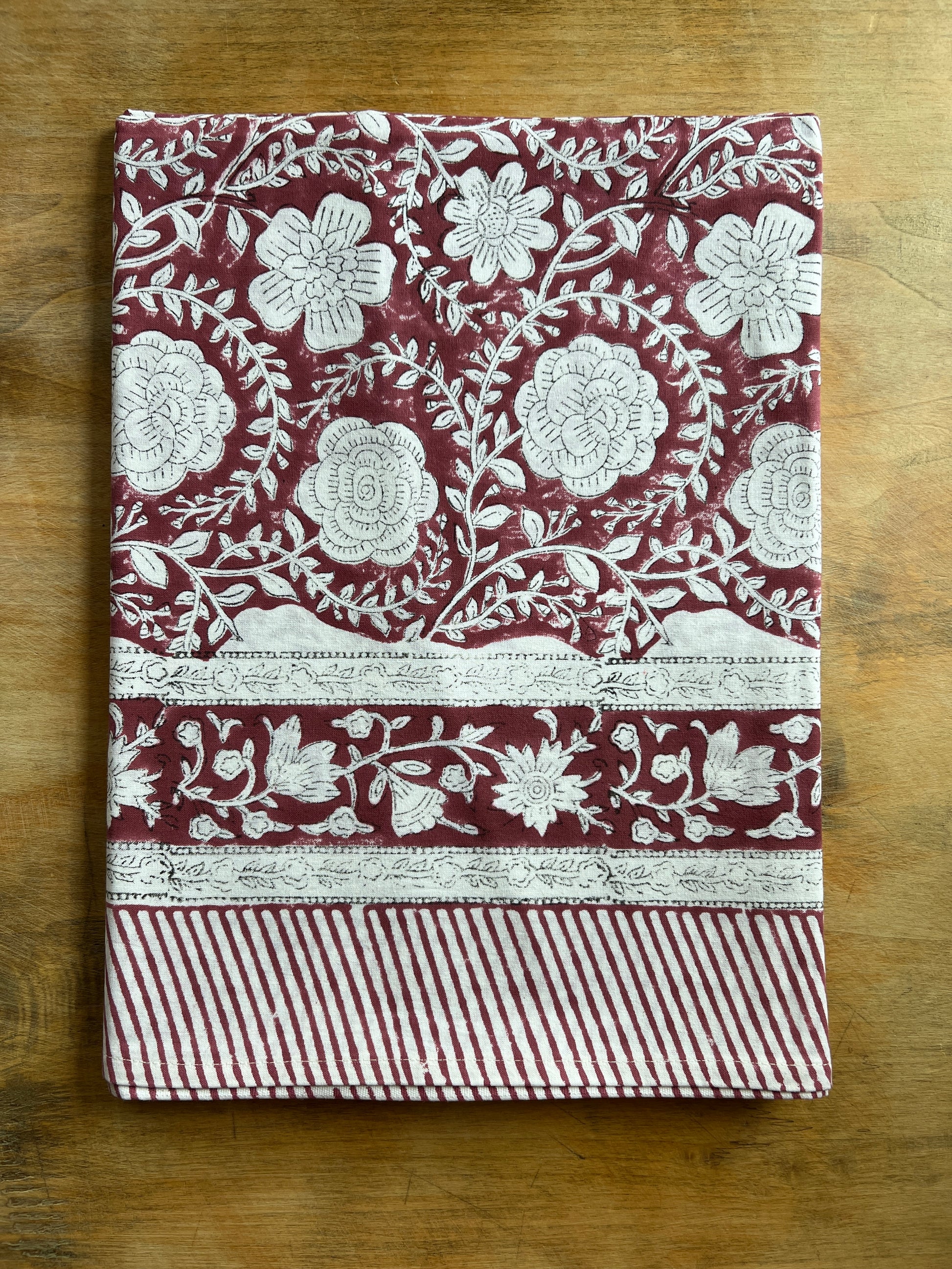 FLORAL BLOCK PRINT GARNET TABLECLOTH