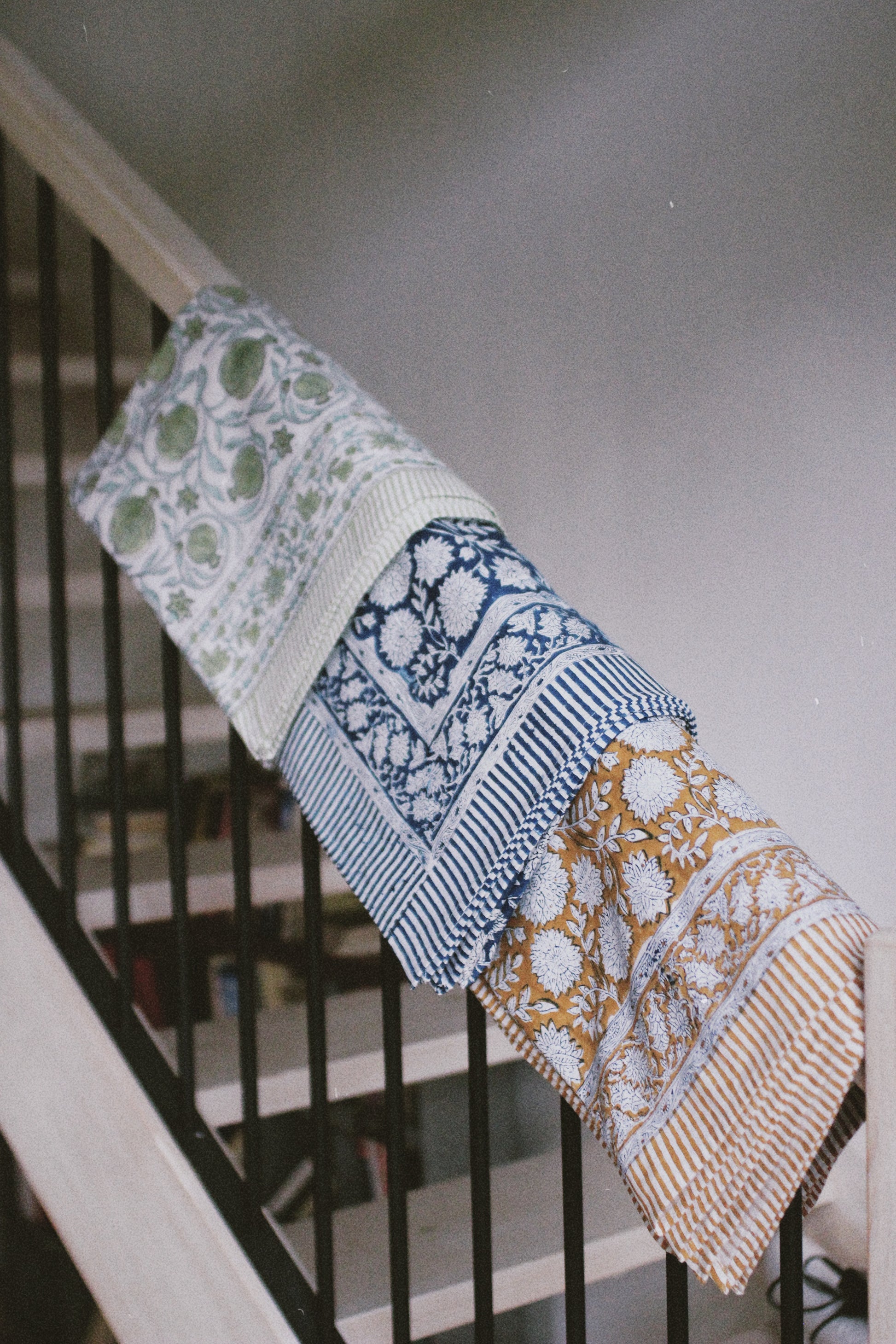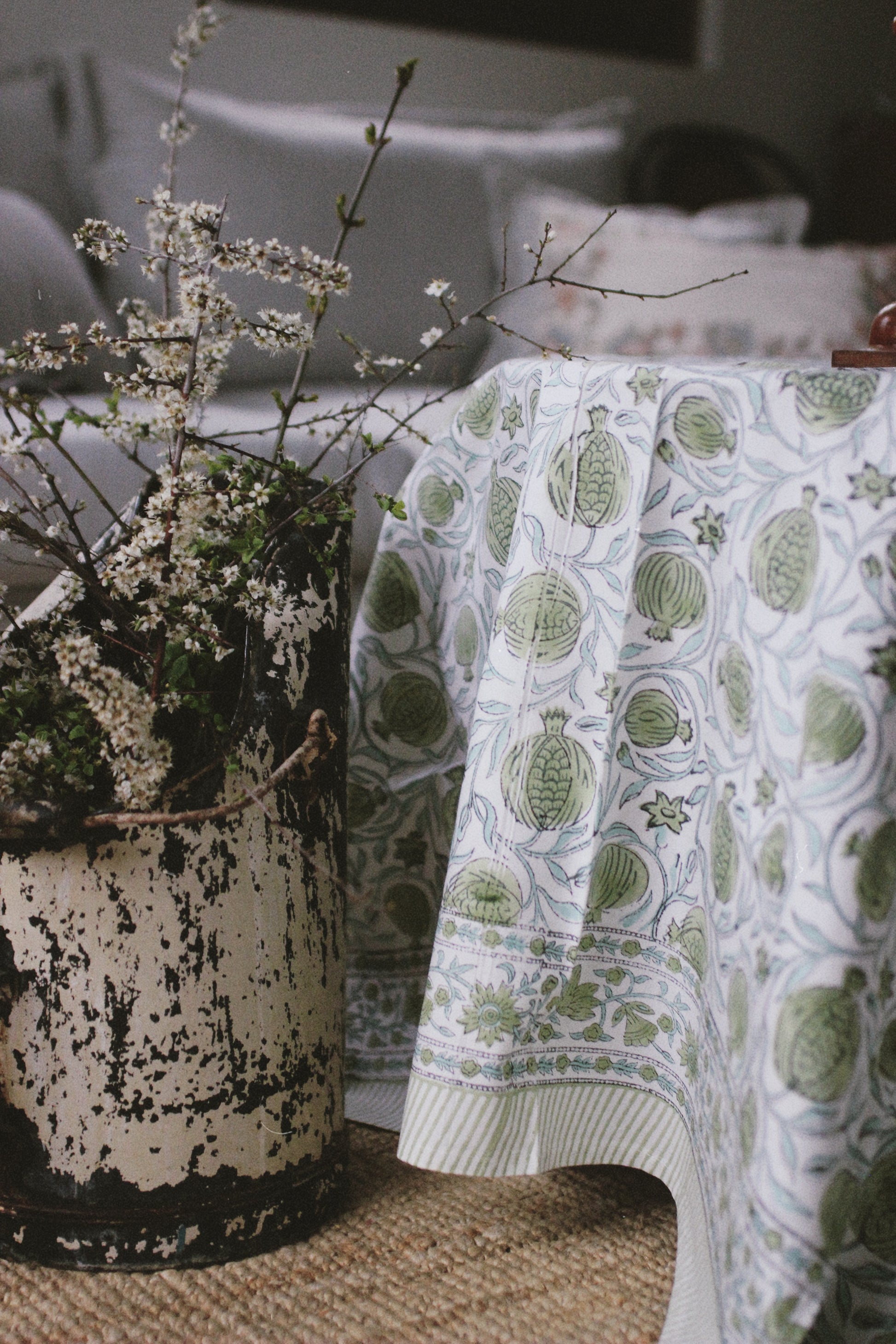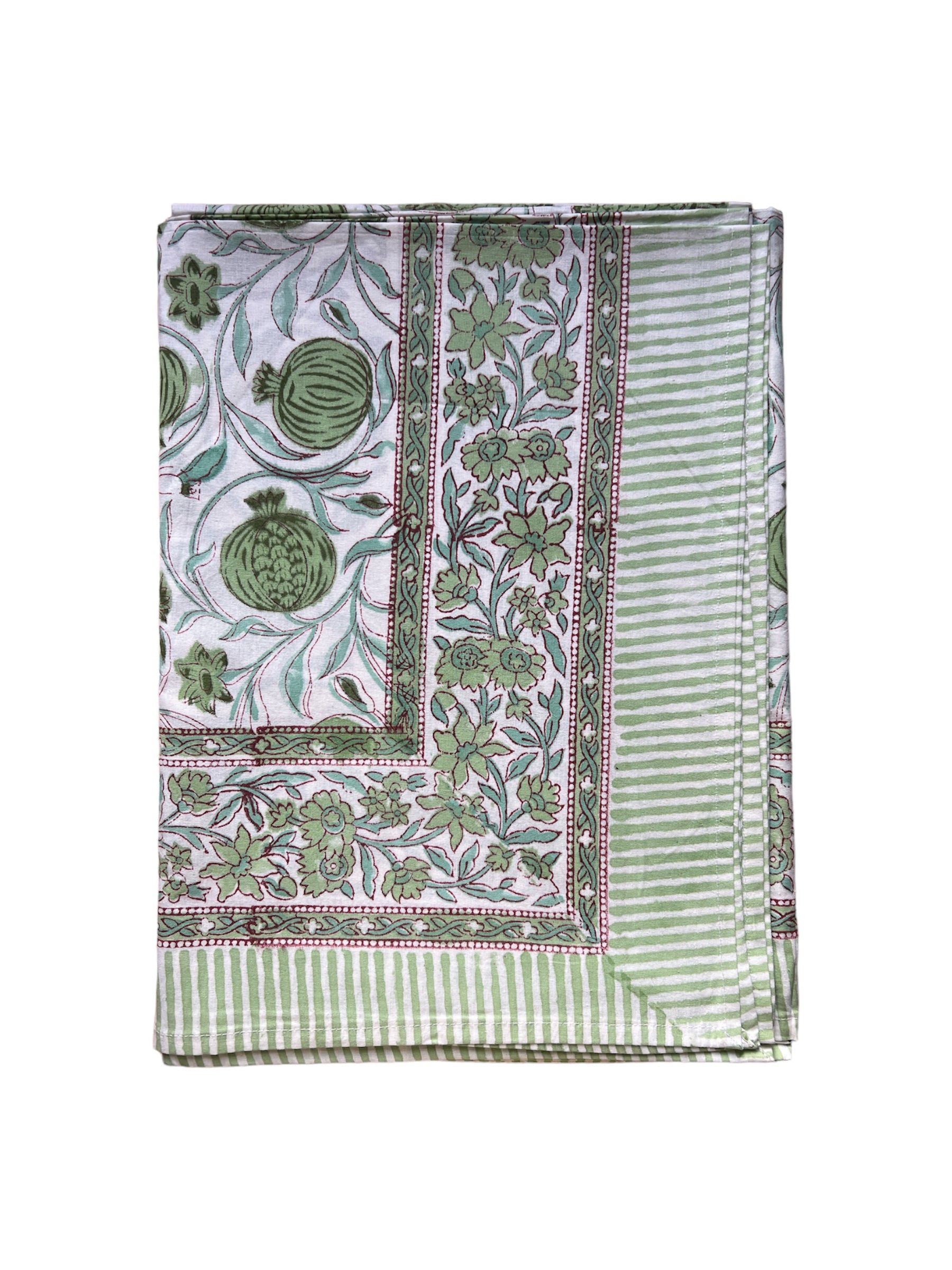 BLOCK PRINT FLORAL TABLECLOTH GREEN