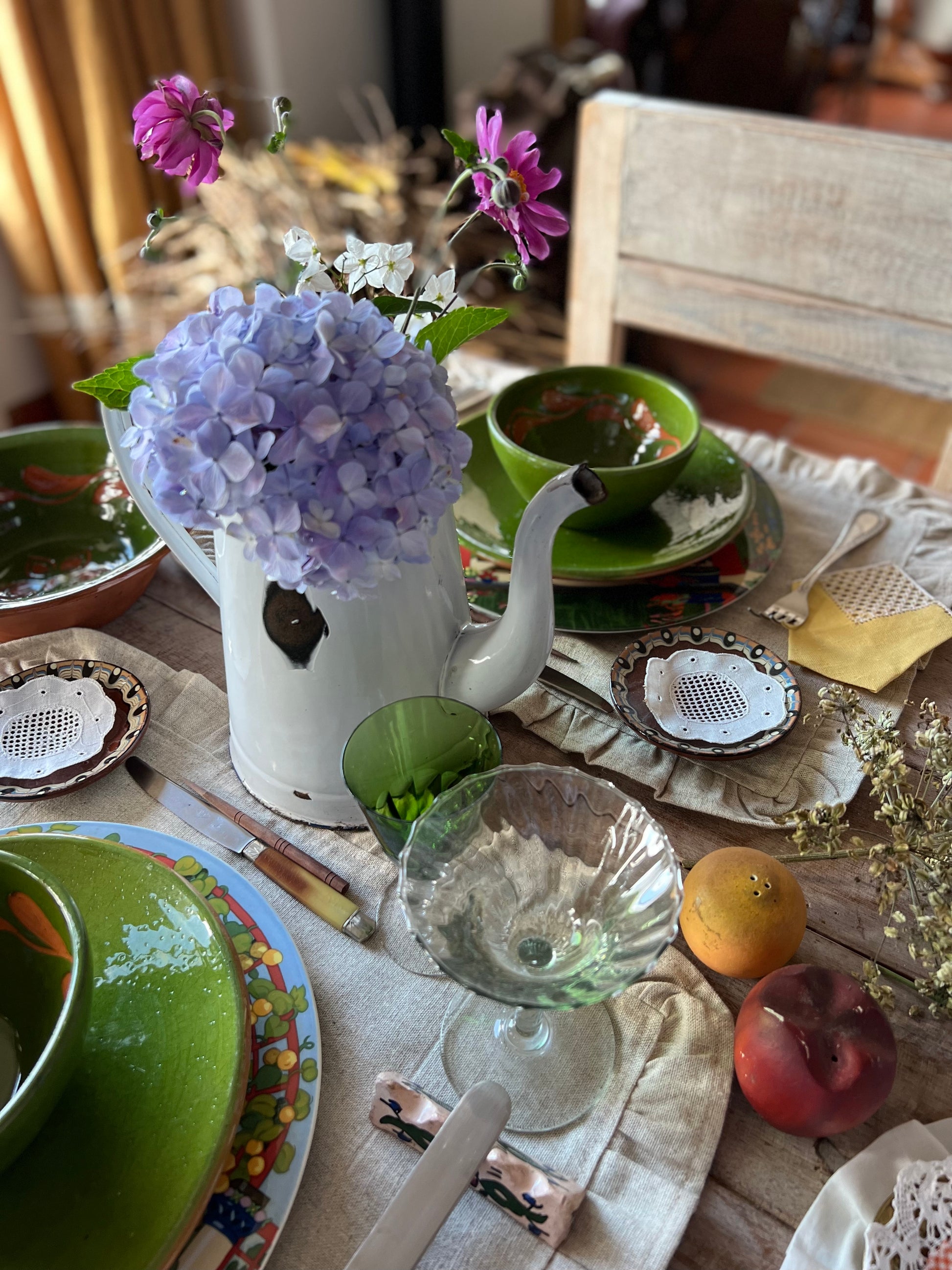 INDIVIDUAL TABLECLOTH WITH BEIGE LINEN RUFFLES