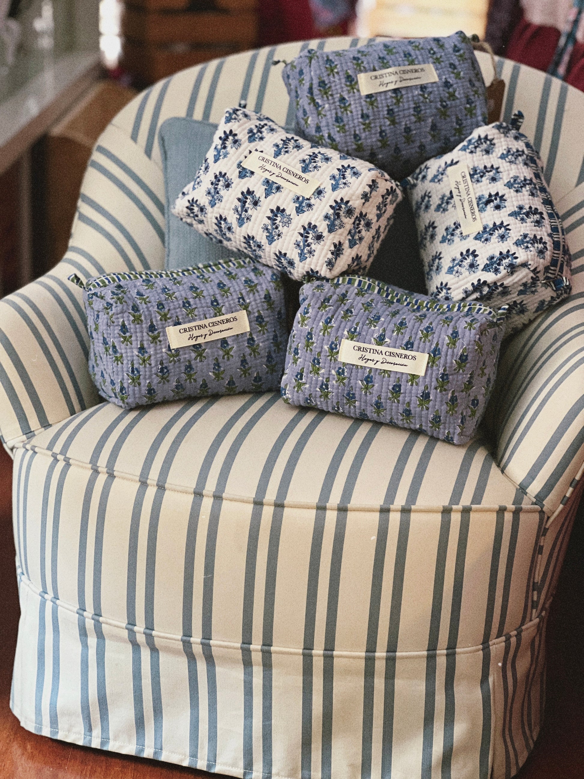 Padded Block Print BAG, ideal for transporting small objects and having everything at hand and well organized. As a toiletry bag, makeup bag, travel jewelry box, underwear bag, etc. White inner lining.