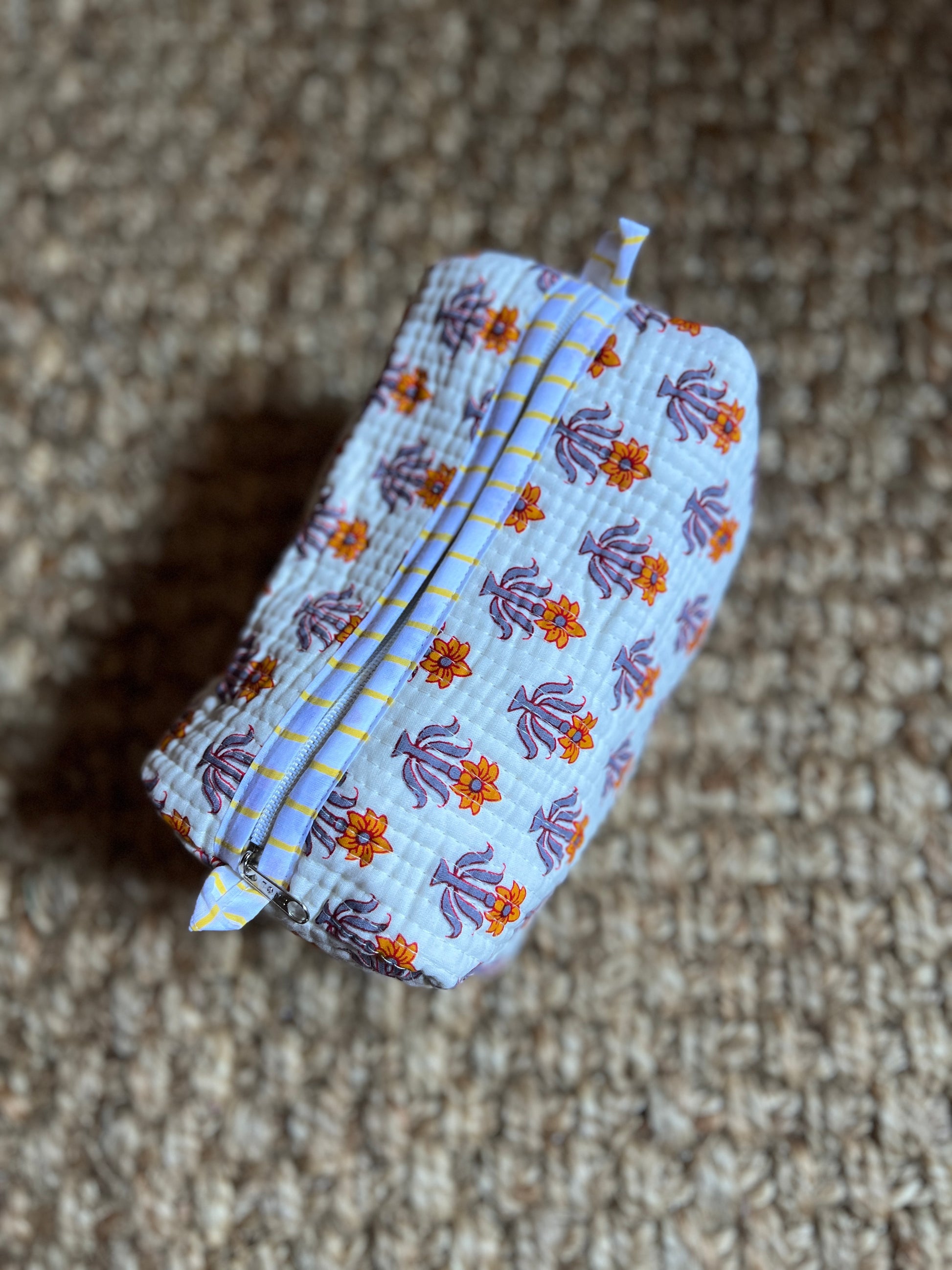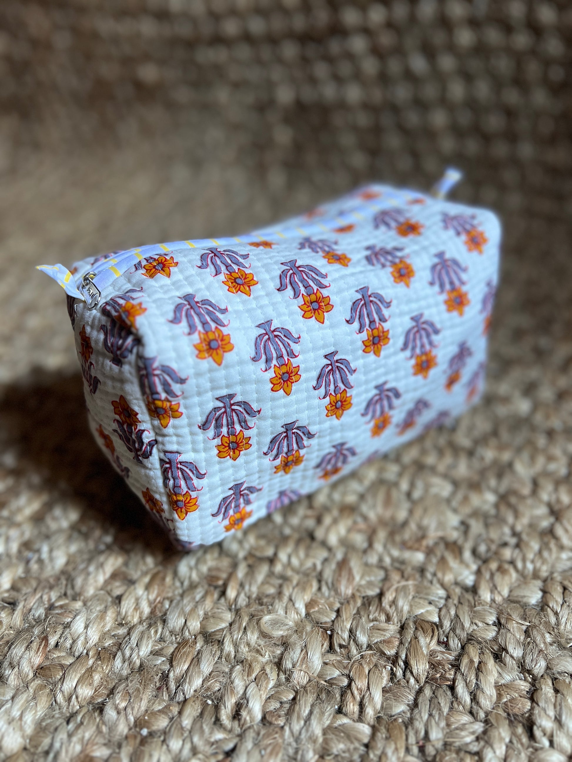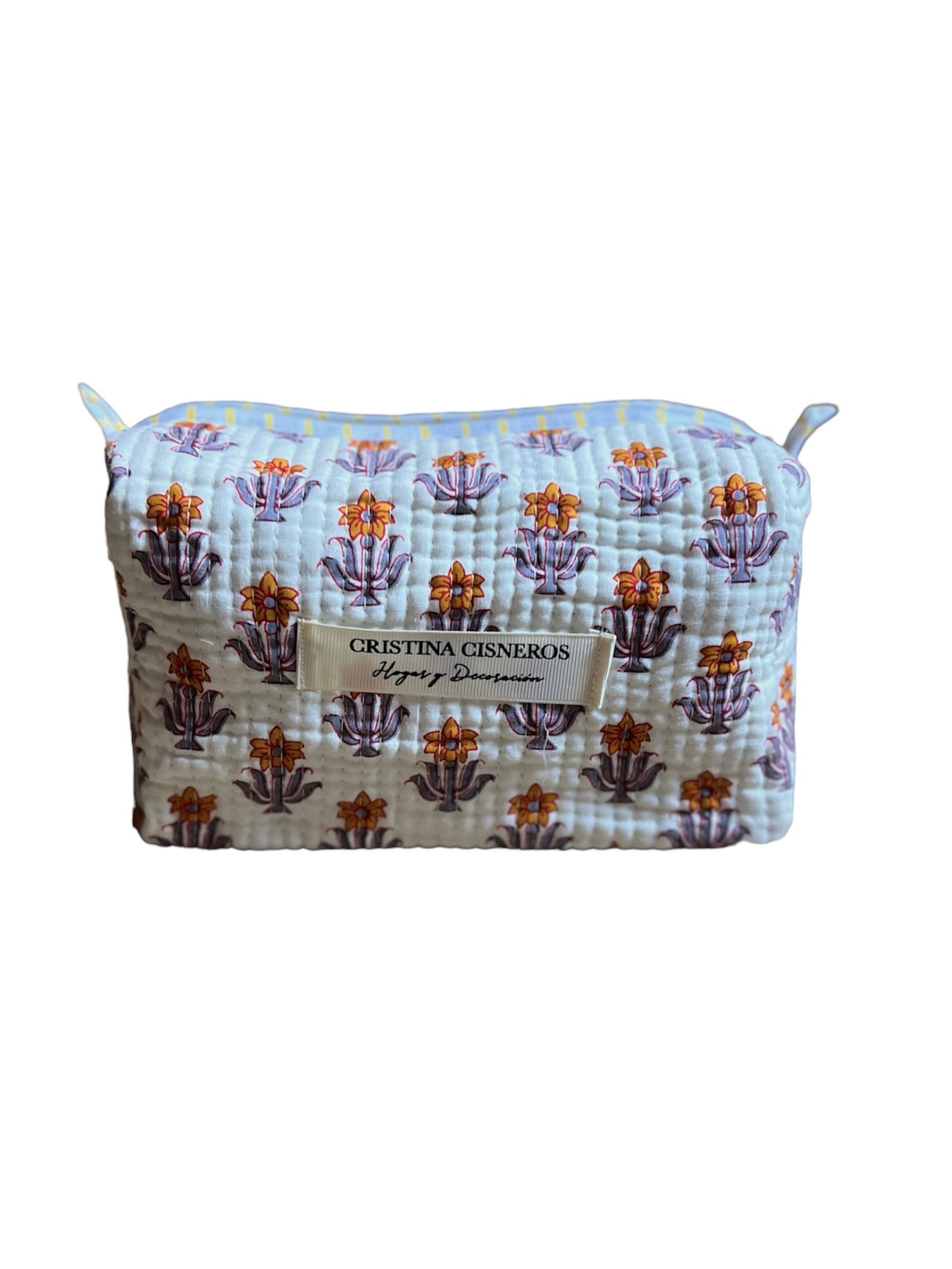 Padded Block Print BAG, ideal for transporting small objects and having everything at hand and well organized. As a toiletry bag, makeup bag, travel jewelry box, underwear bag, etc. White inner lining.
