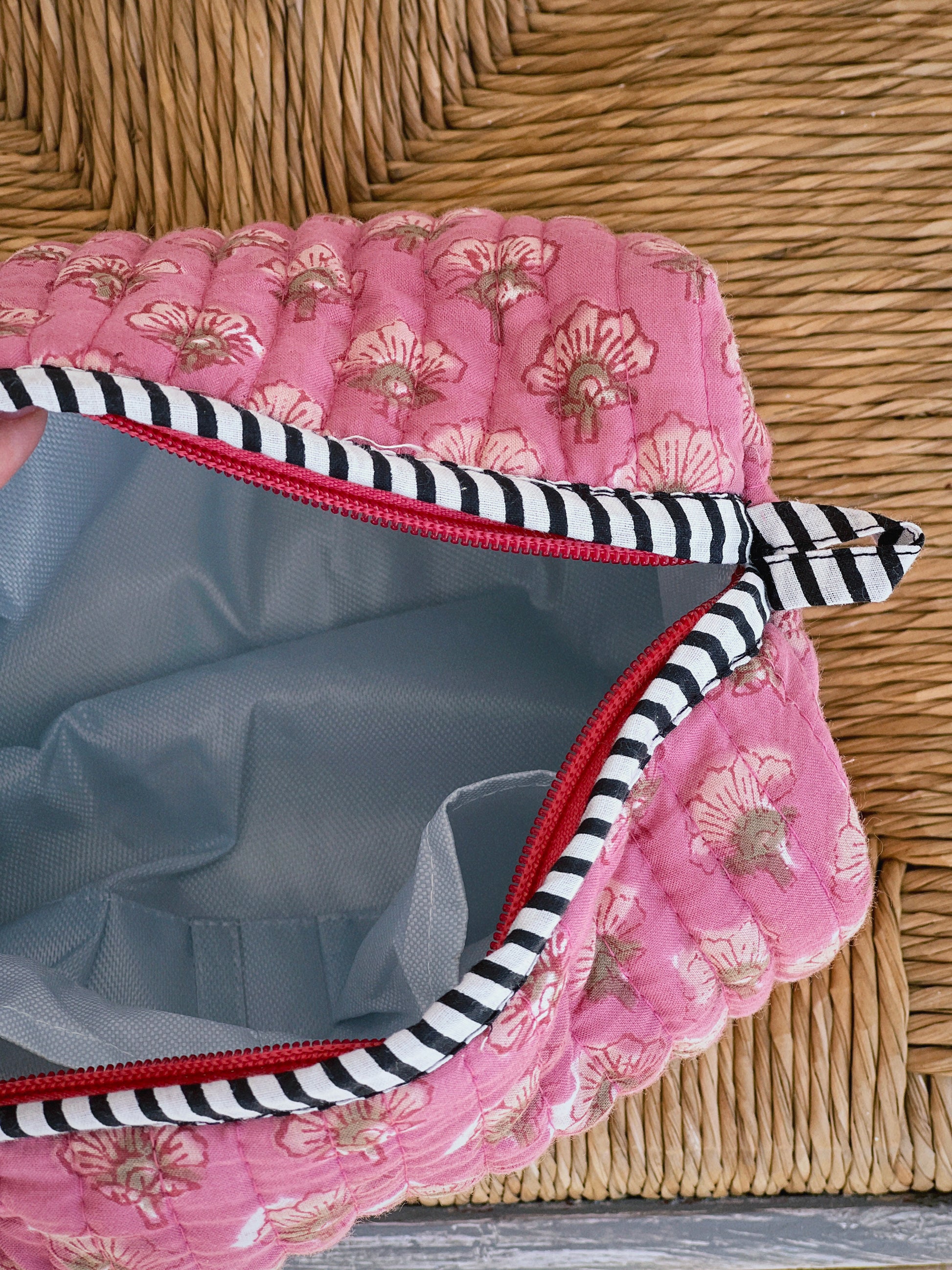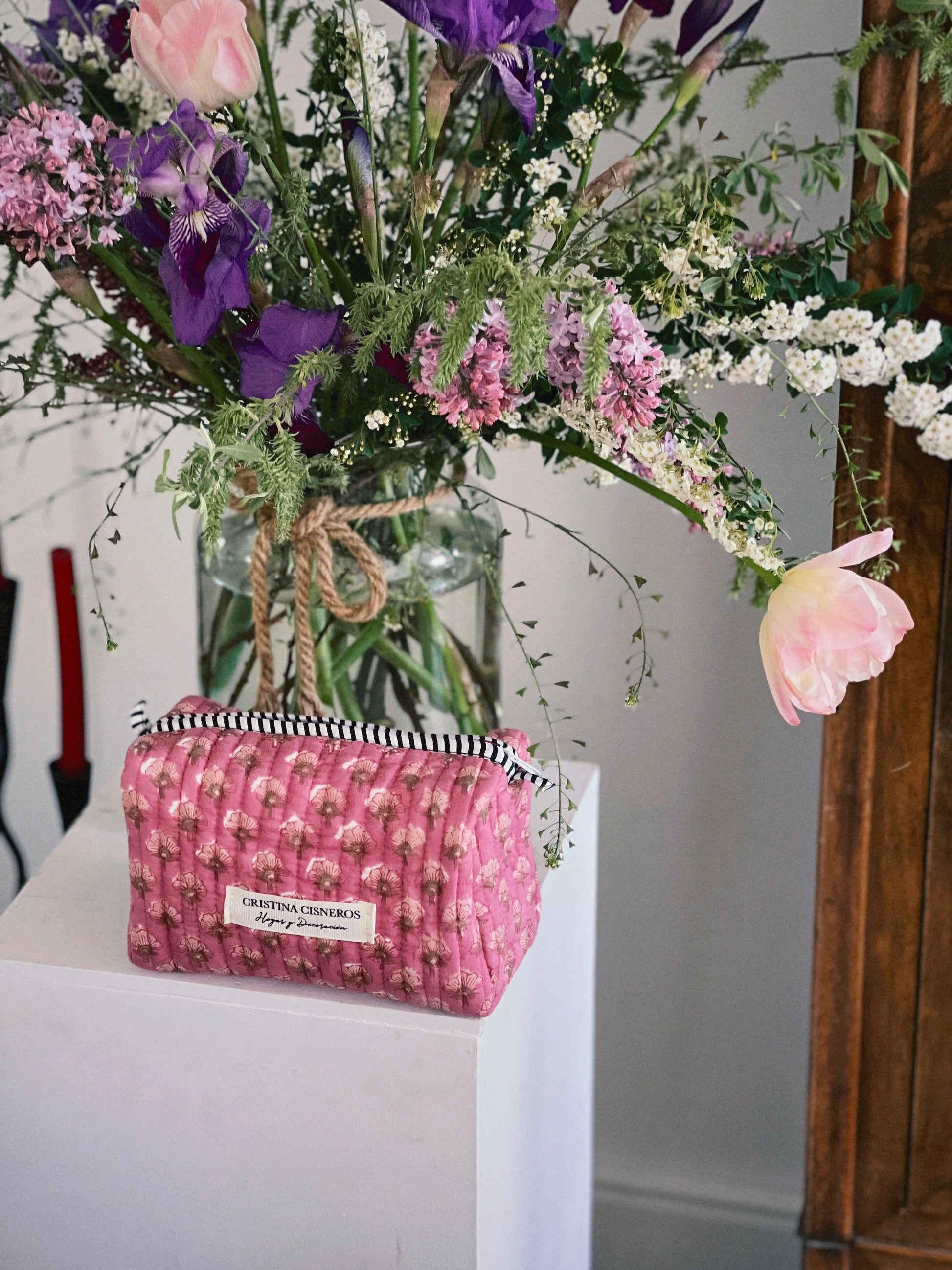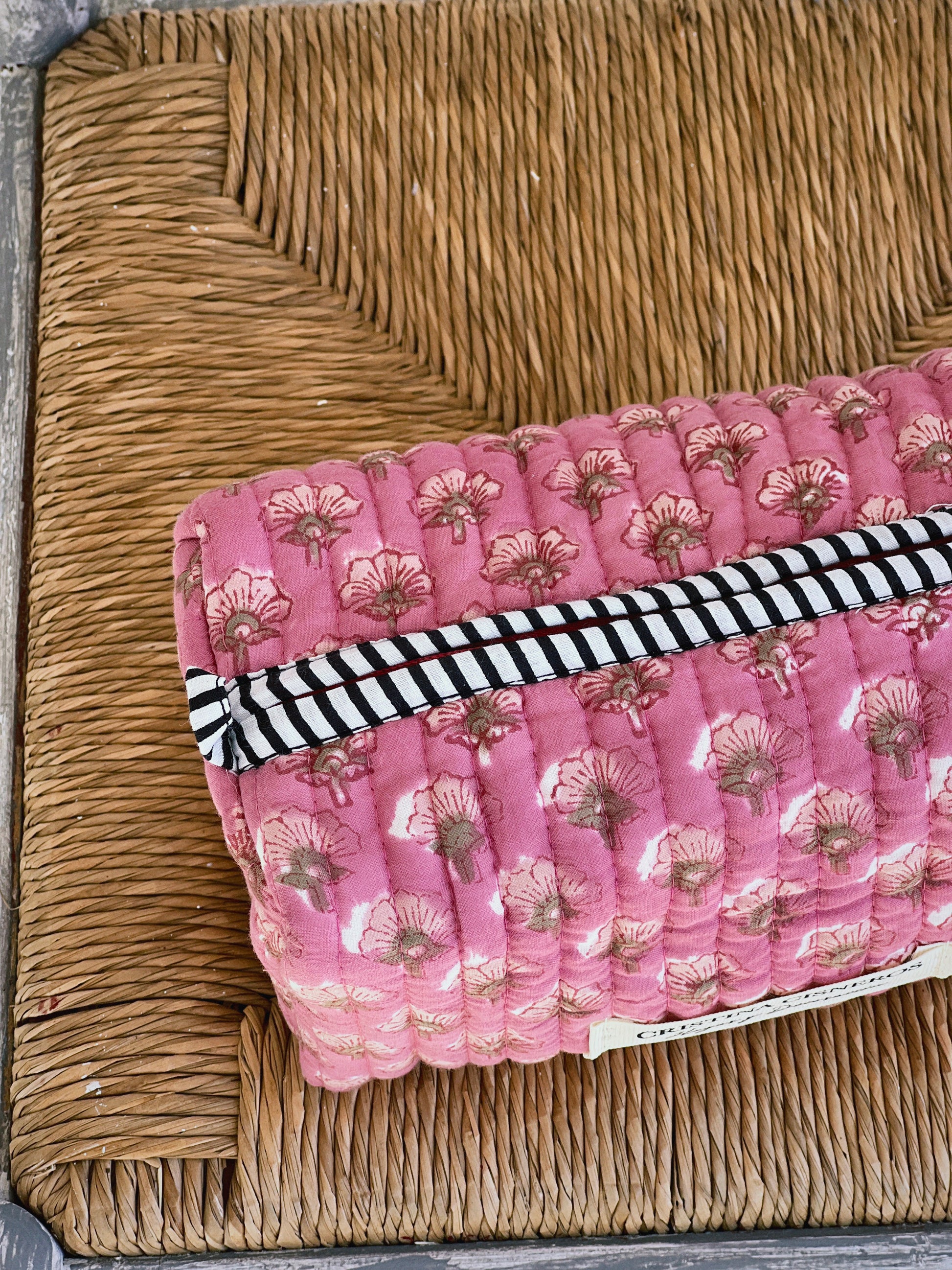 PINK FLORAL BLOCK PRINT TOILETRY BAG