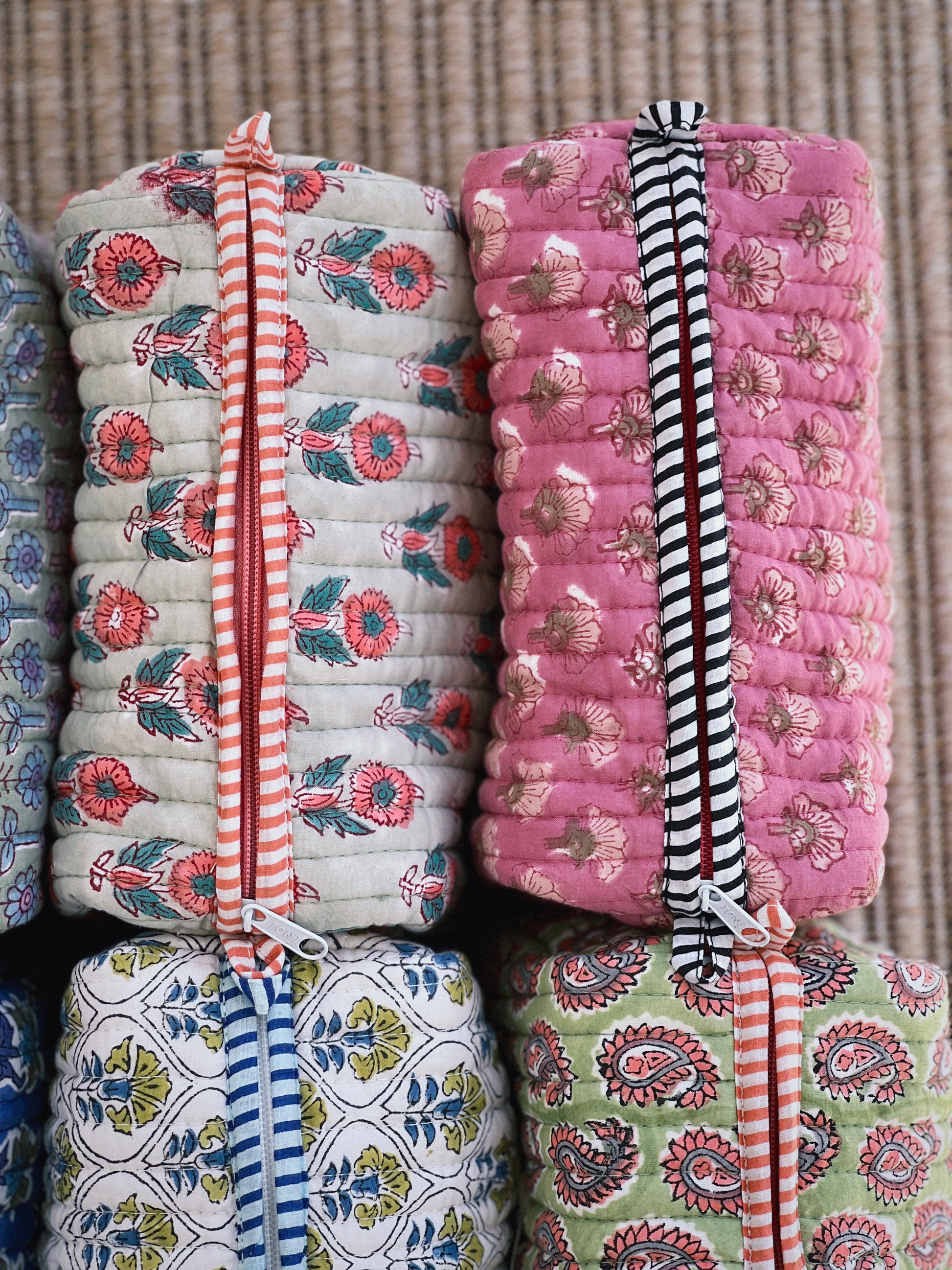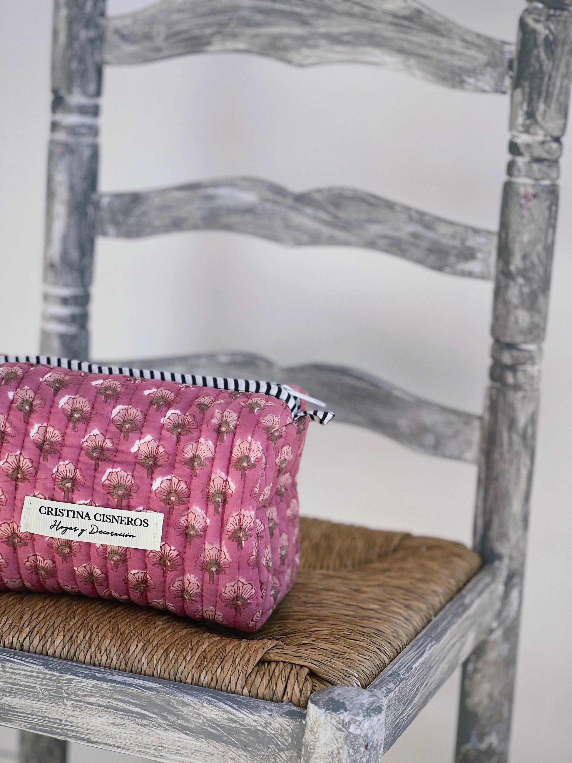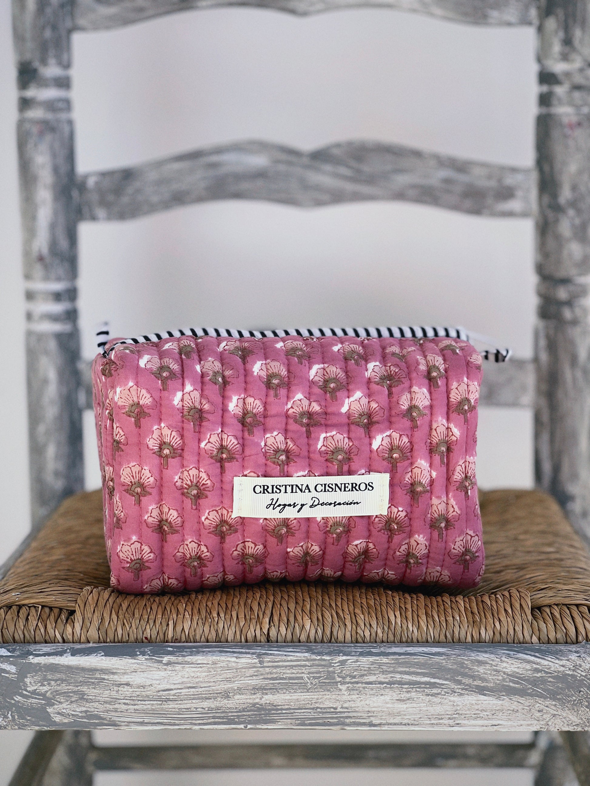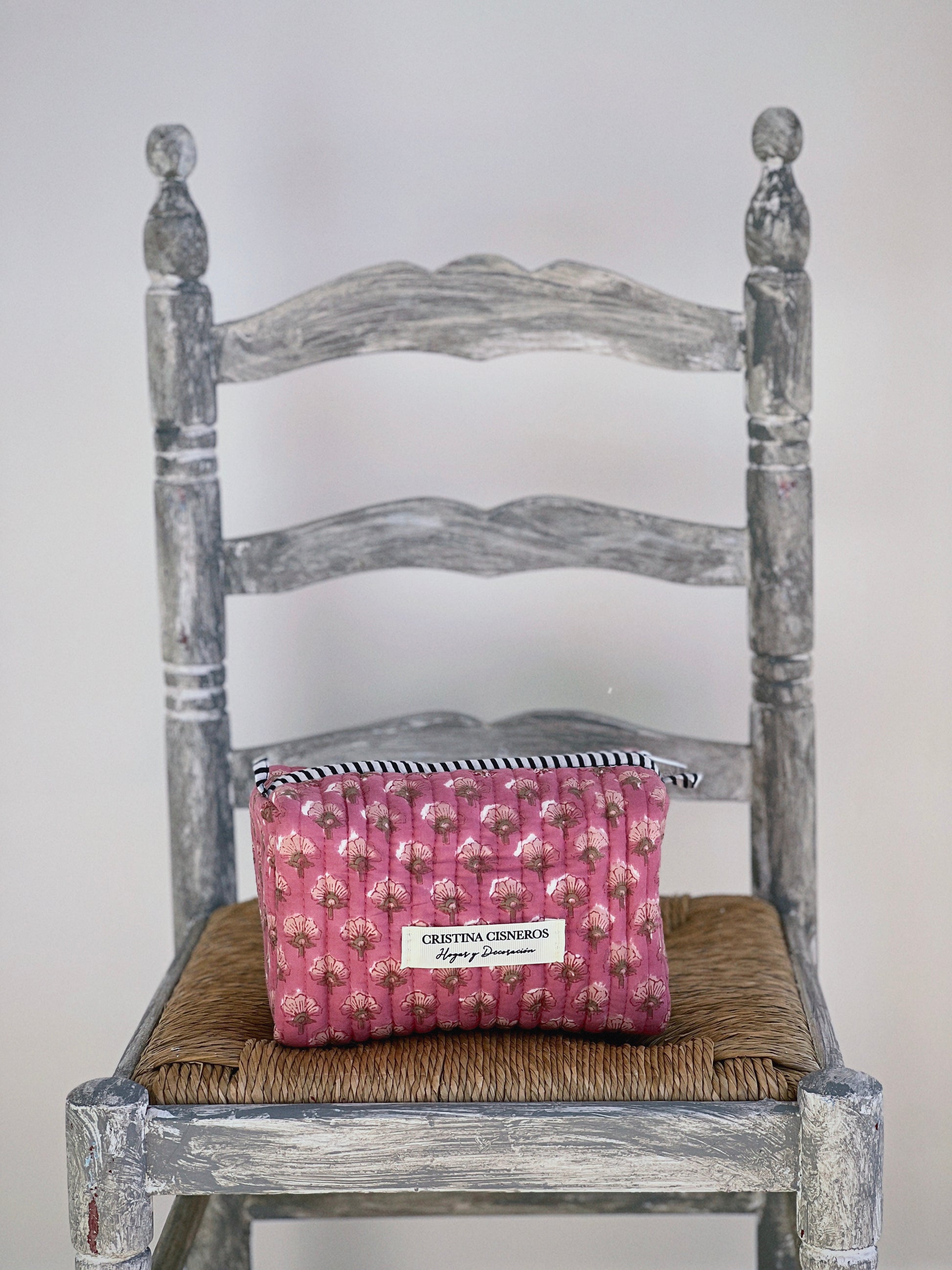 PINK FLORAL BLOCK PRINT TOILETRY BAG