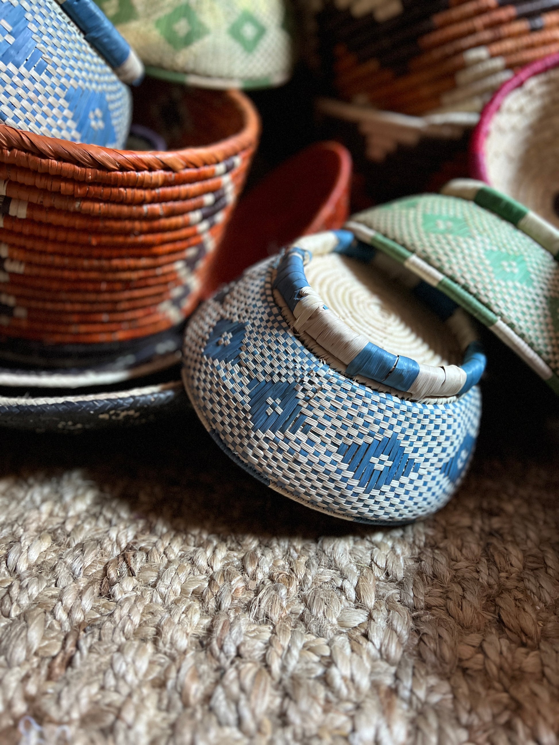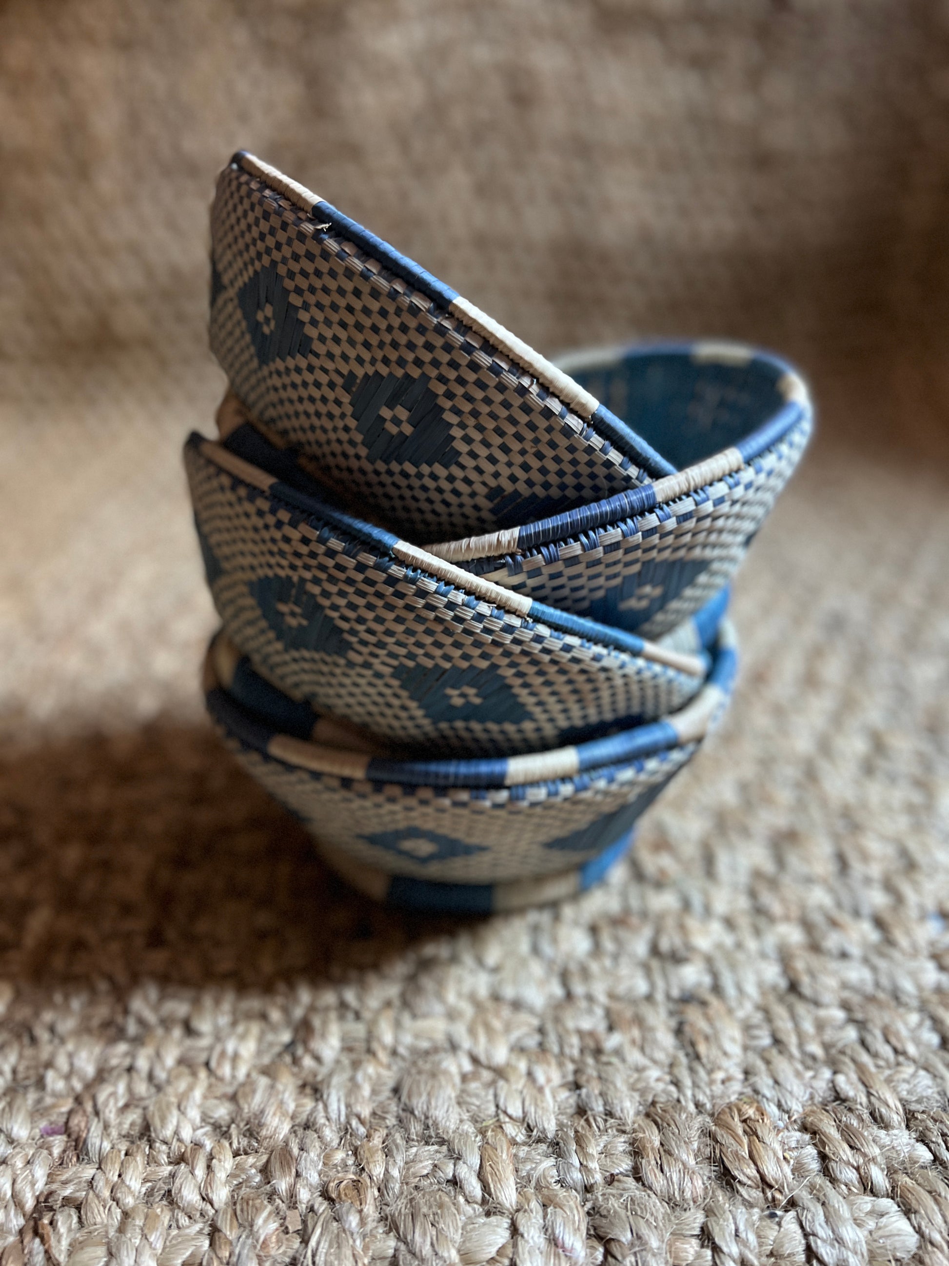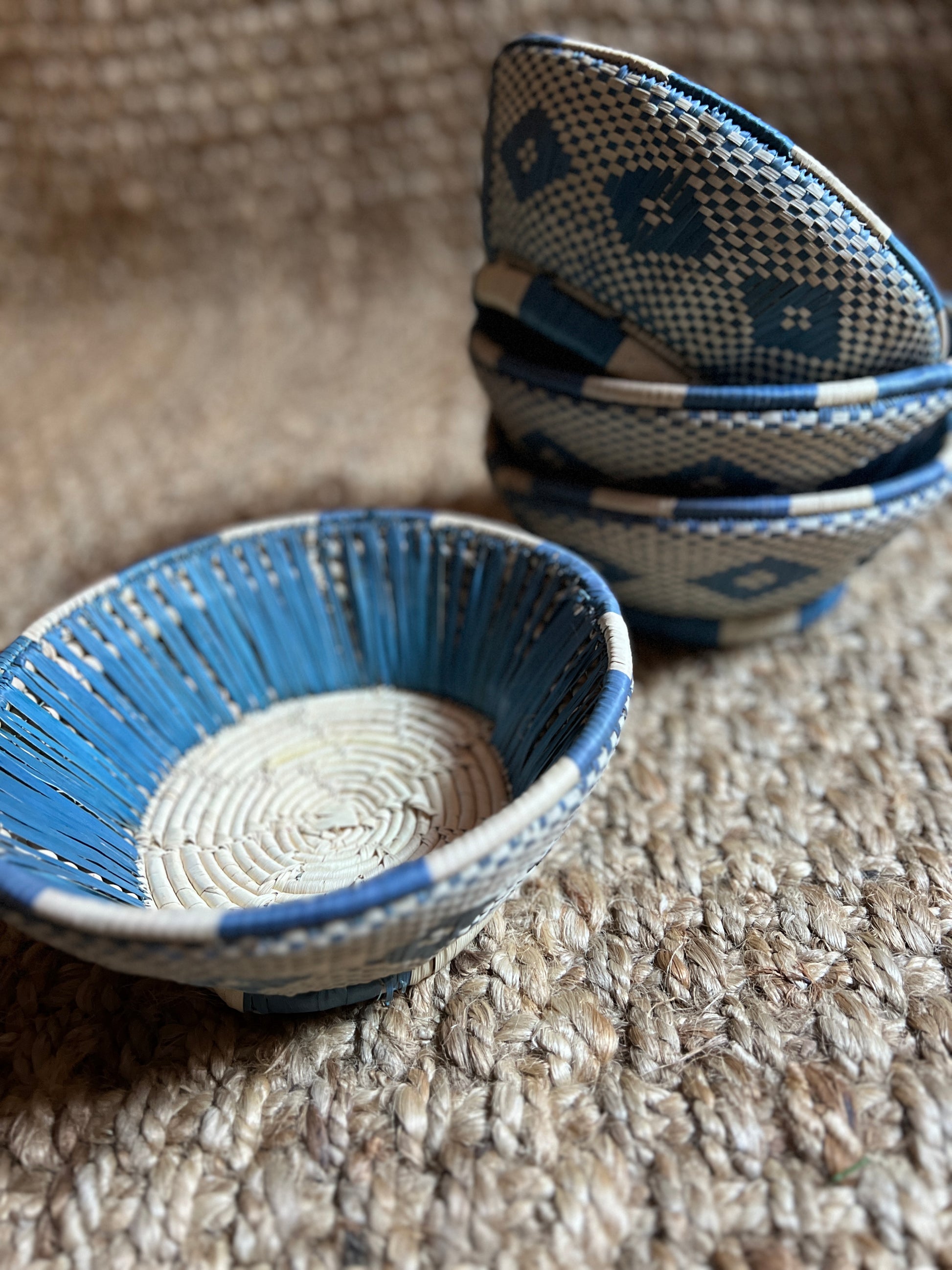 Handcrafted vegetable fibre fruit basket bowl with different designs and colours. Ideal as a wall decoration or as a fruit bowl, bread basket, basket, pocket emptier, etc.