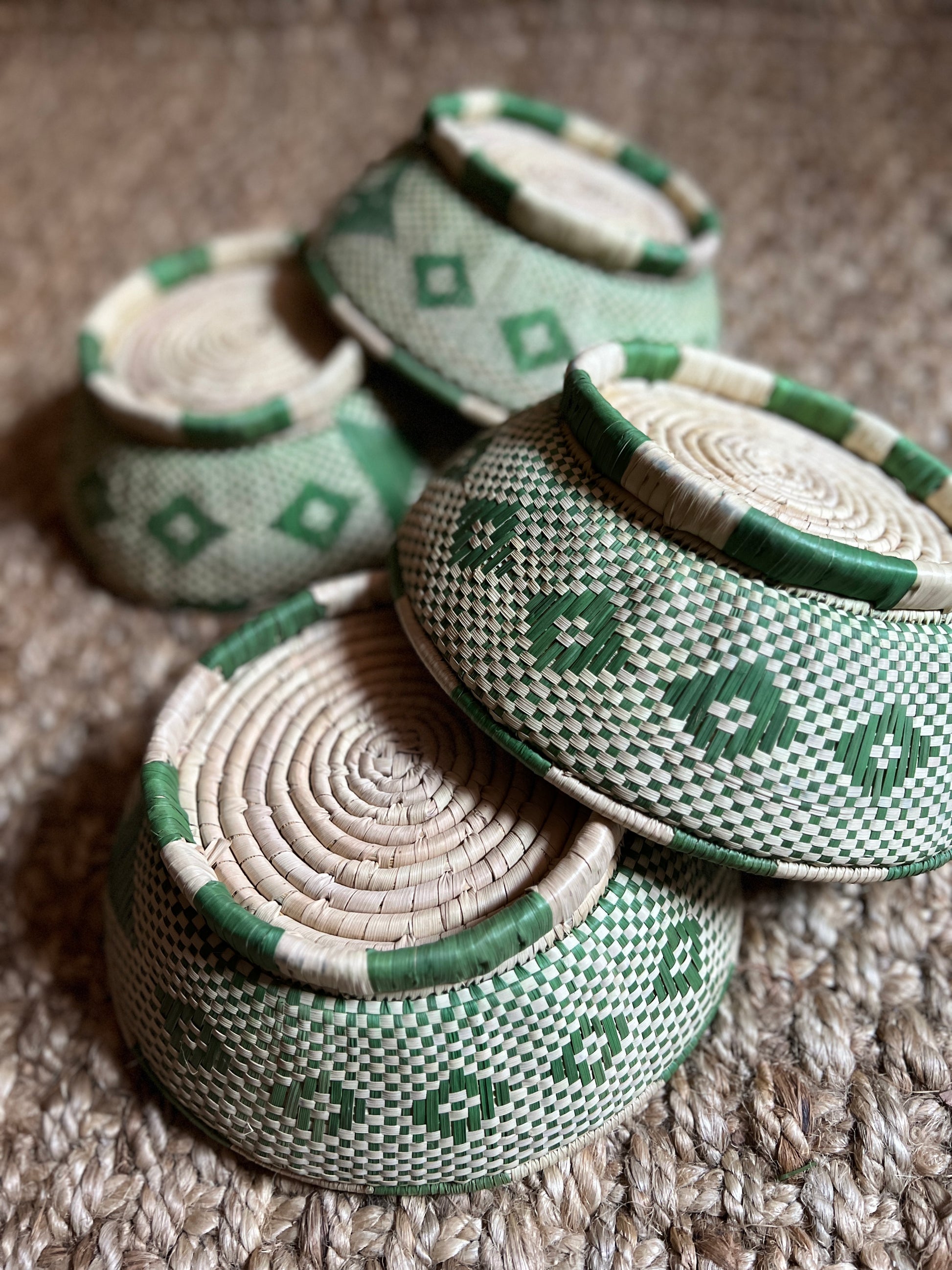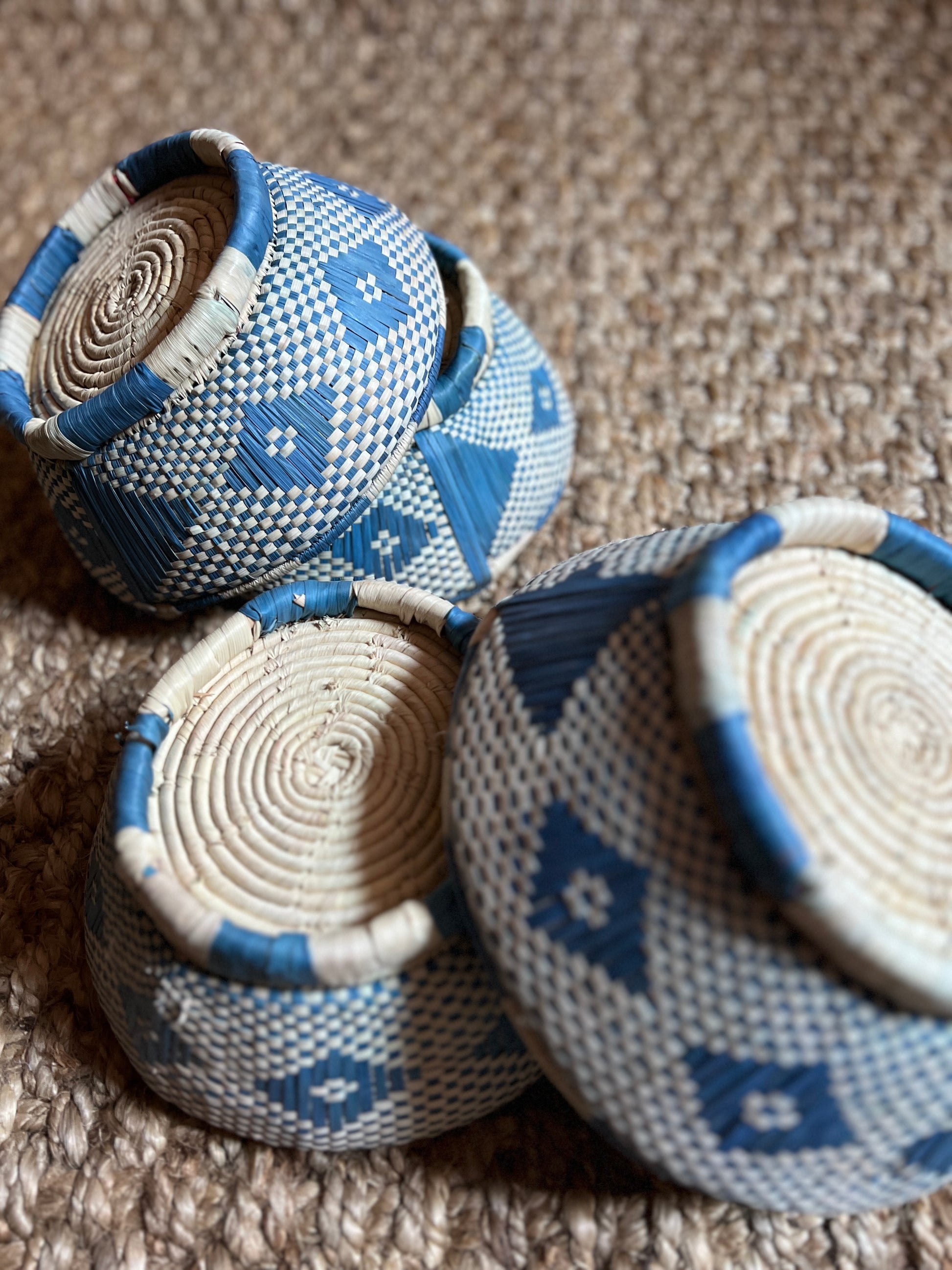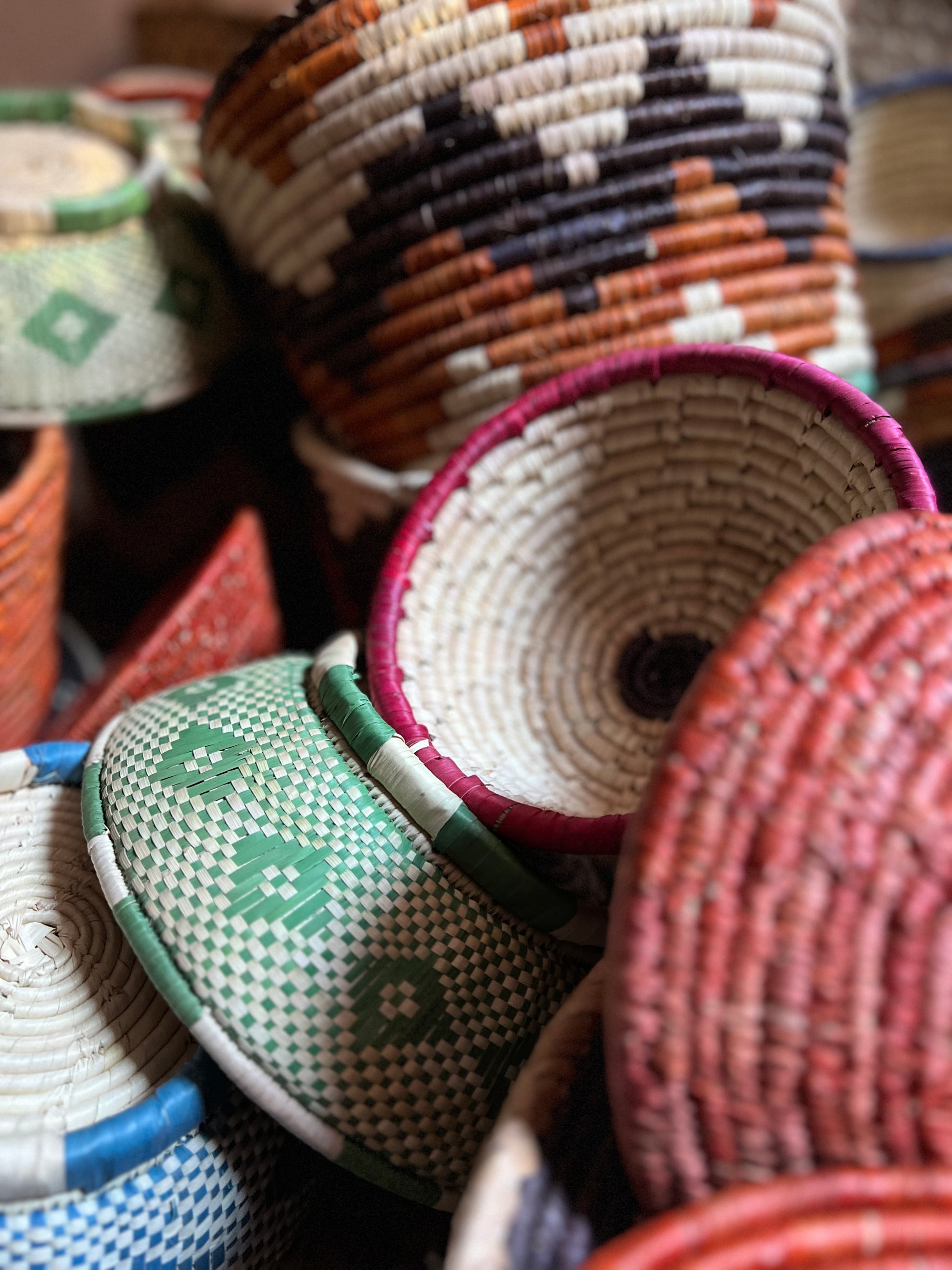 Handcrafted vegetable fibre fruit basket bowl with different designs and colours. Ideal as a wall decoration or as a fruit bowl, bread basket, basket, pocket emptier, etc.