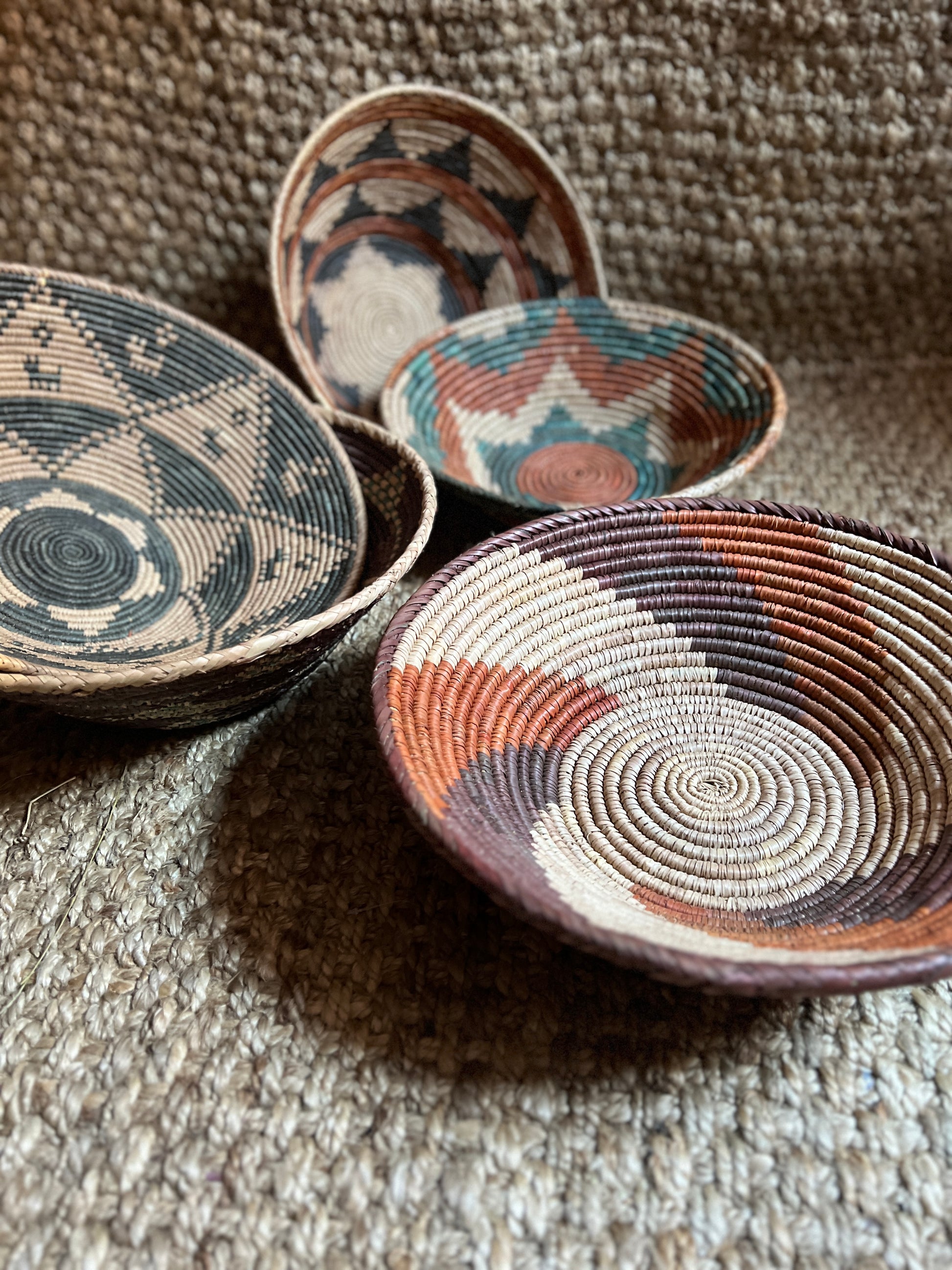 Plate, fruit bowl, bowl, bread basket, made of vegetable fiber, handmade with different designs and colors. Ideal as a wall decoration or as a fruit bowl, bread basket, baskets, empty pockets, etc.