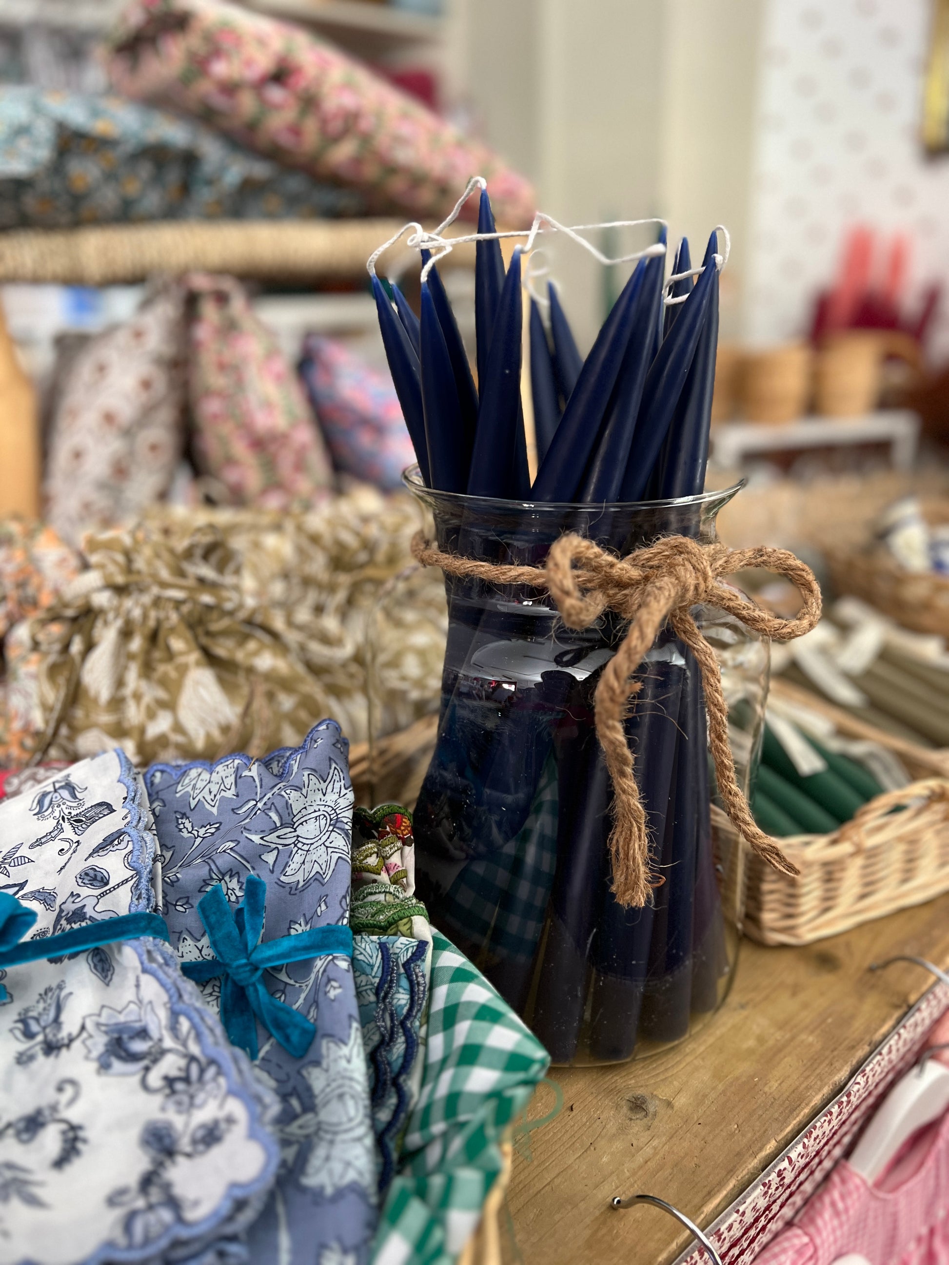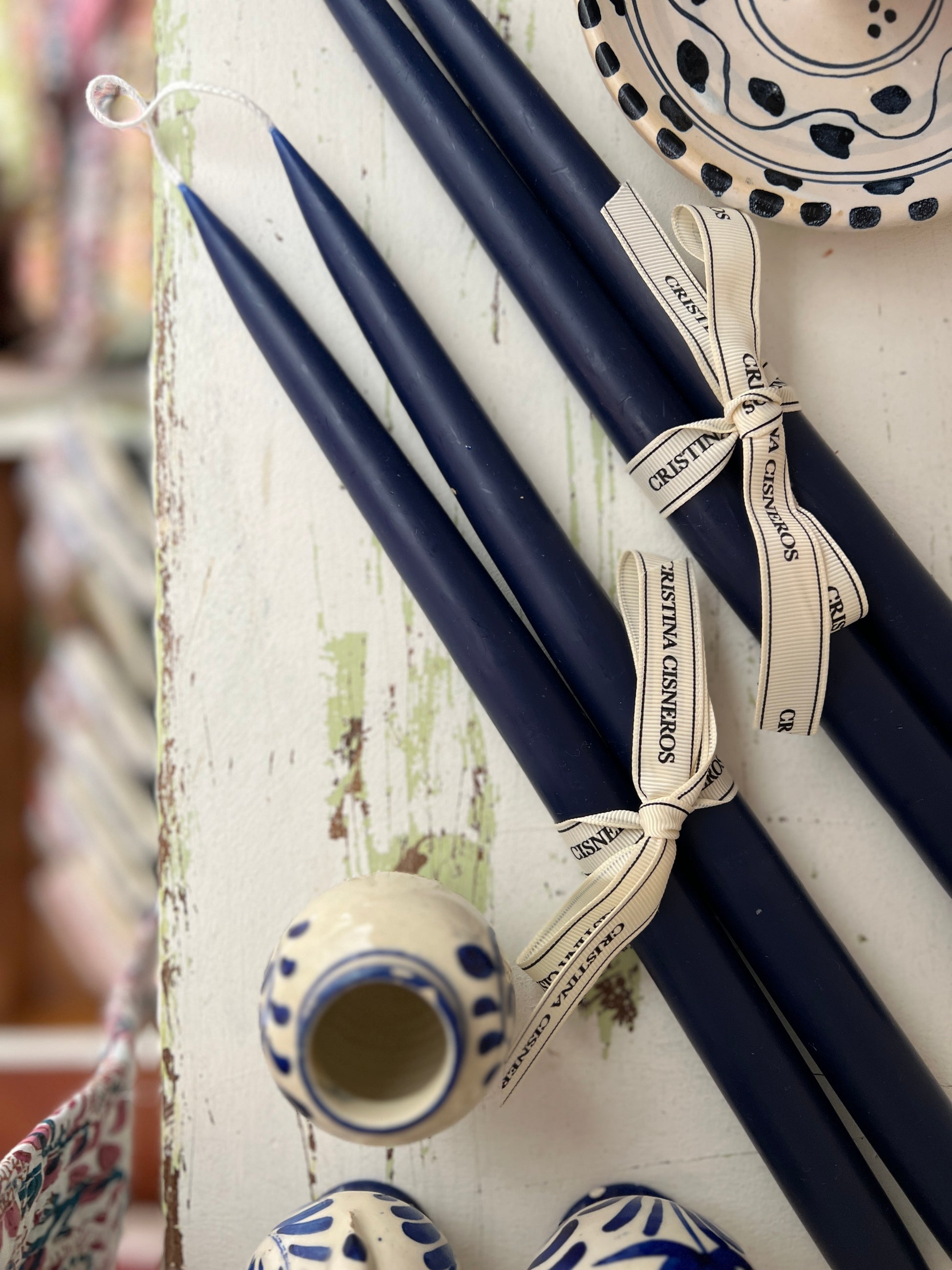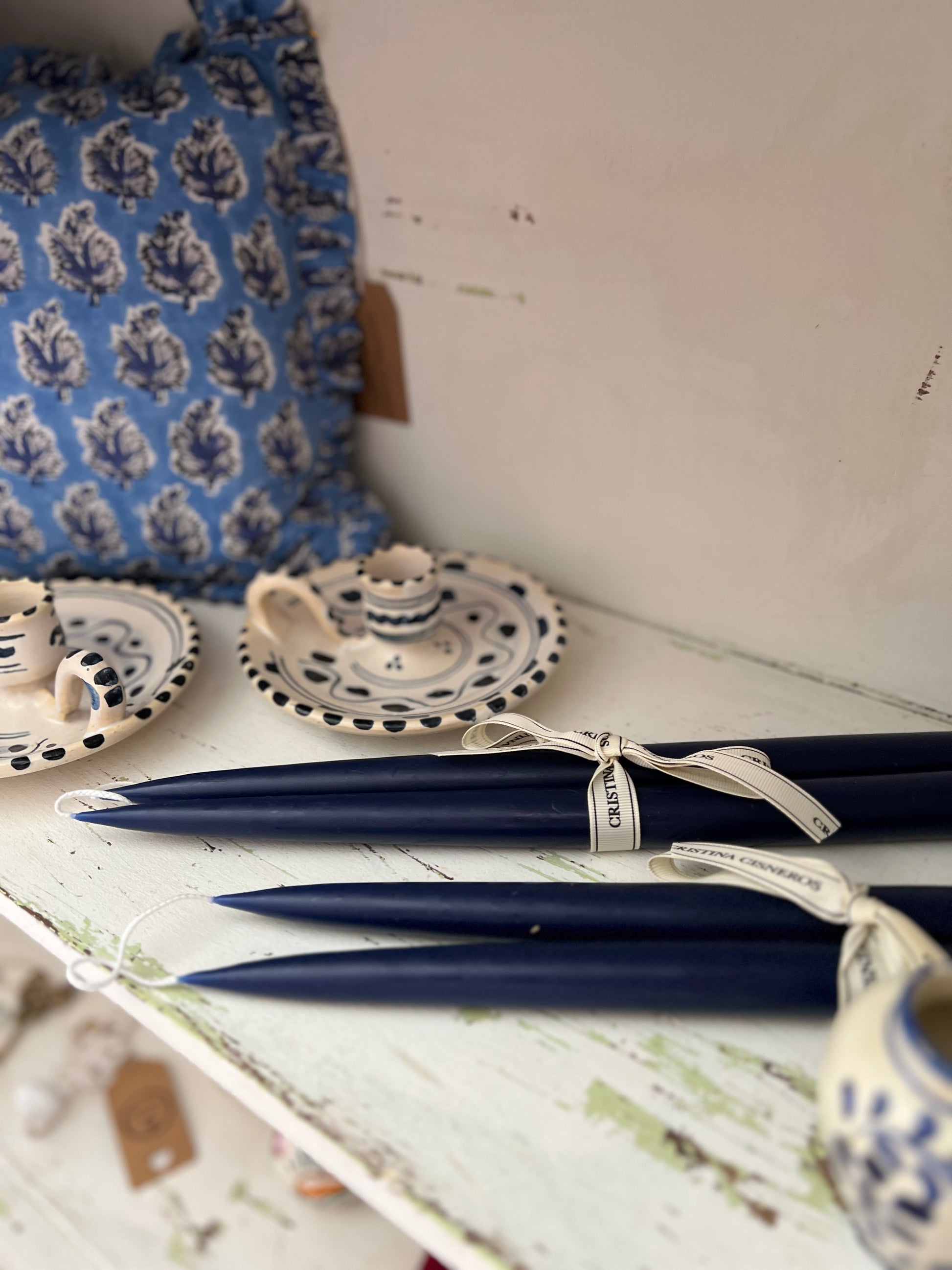 SET OF 2 TALL CONICAL DARK BLUE CANDLES