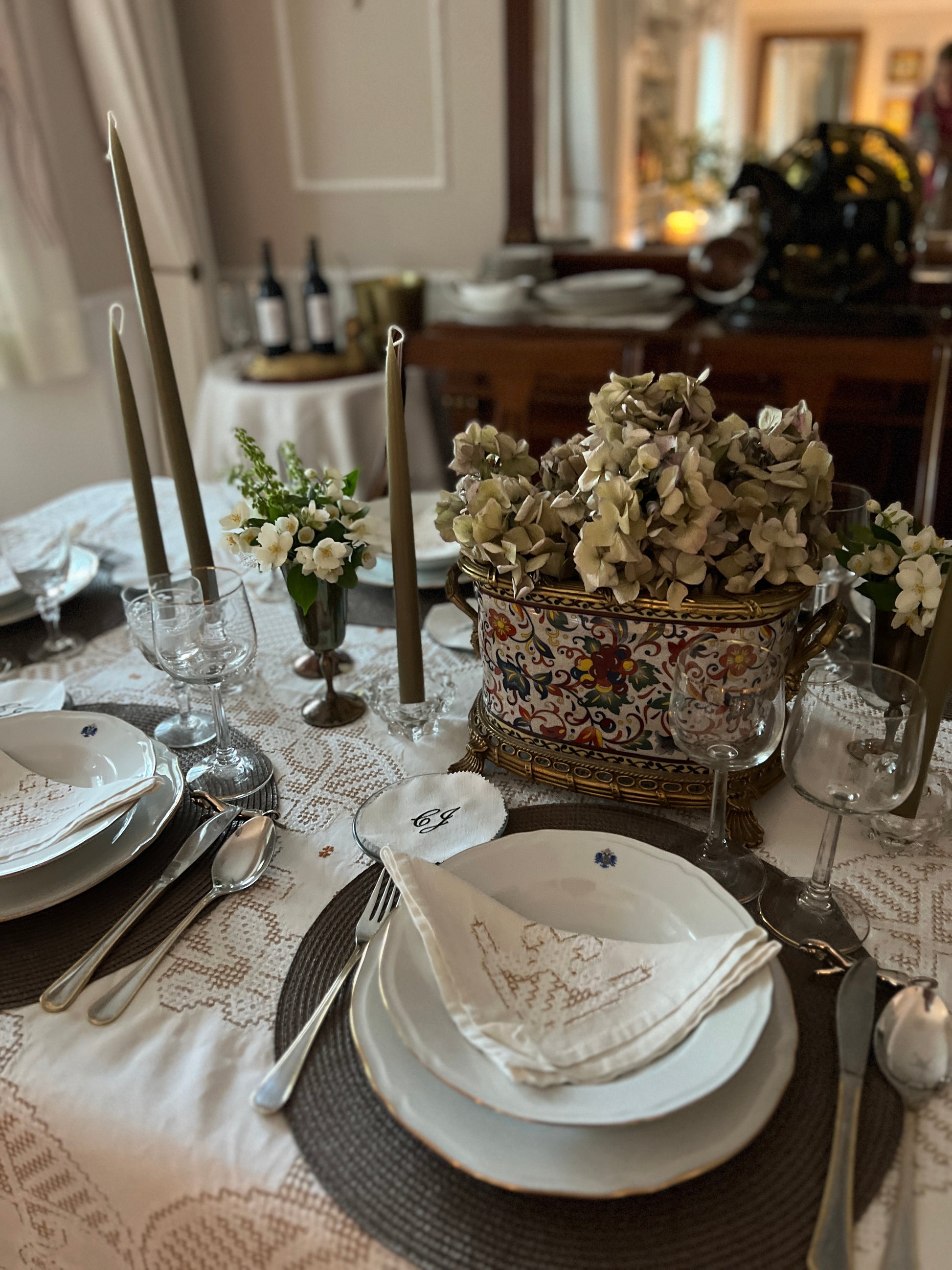 SET OF 2 TALL CONICAL OLIVE GREEN CANDLES