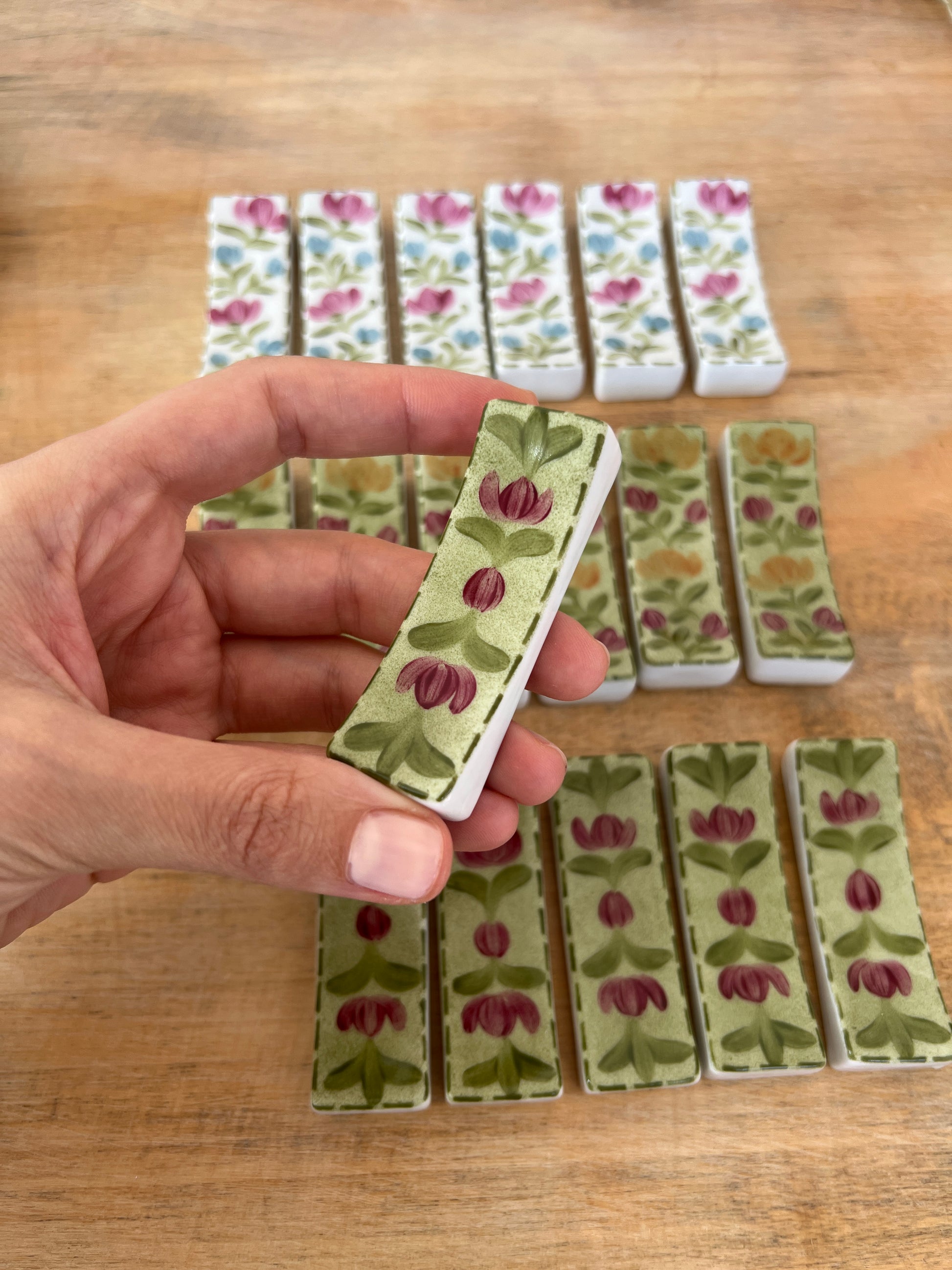 Hand painted porcelain cutlery holder . Measurements: 6.5x2 cm.