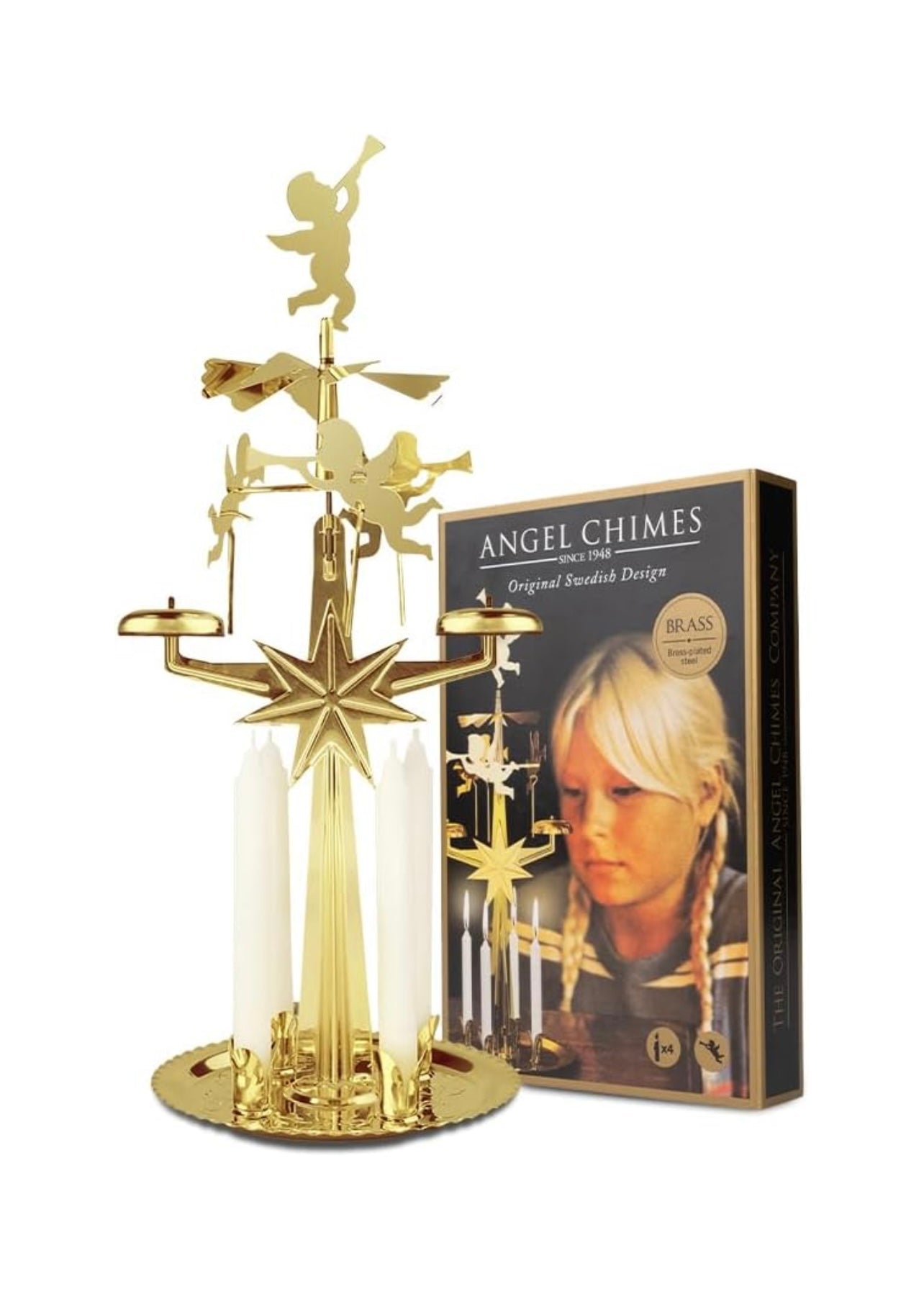 Carrusel de Ángeles en latón The Original Swedish Angel Chime sueca tiene una tradición que se remonta a 1948. Al girar genera un tintineo con el calor de las velas.
