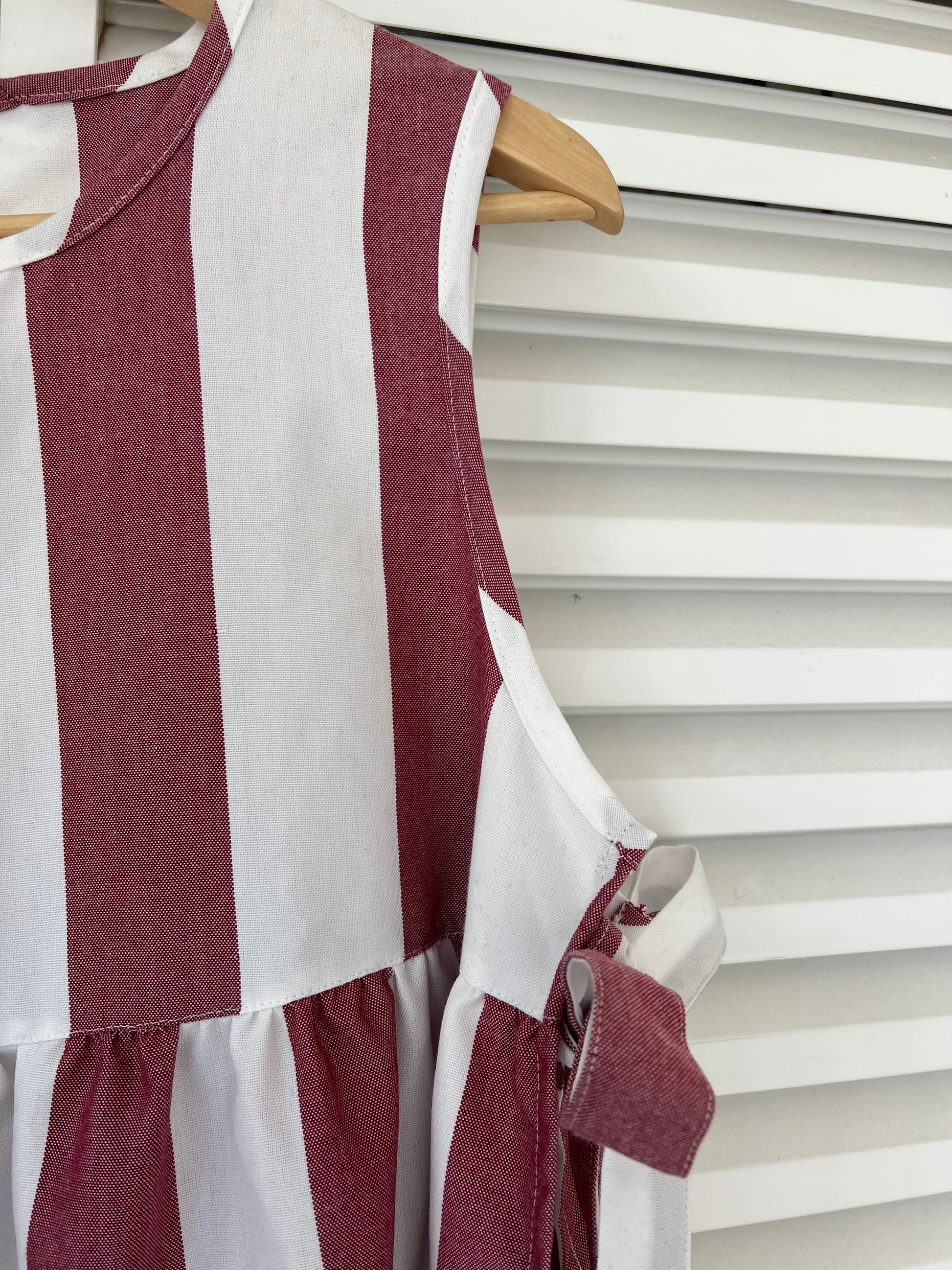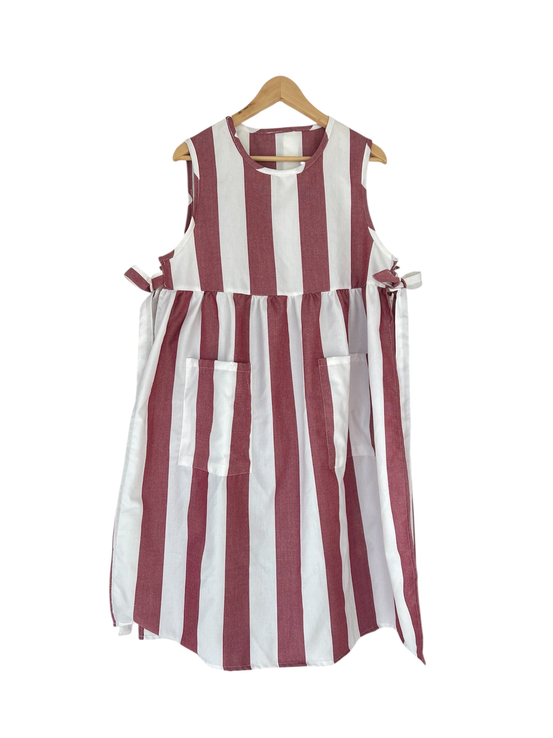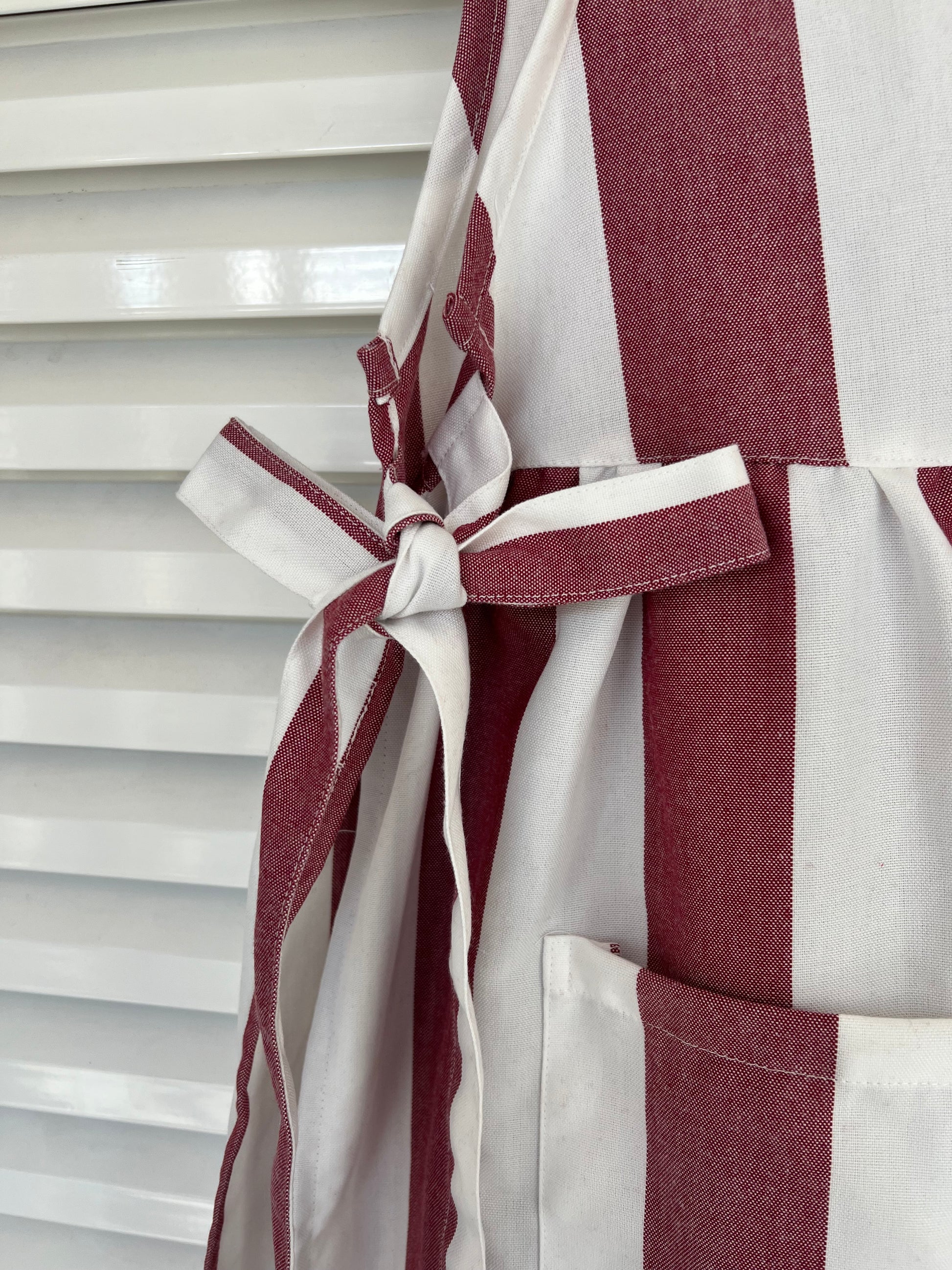 DELANTAL DE LINO RAYAS GUINDA CON LAZADA